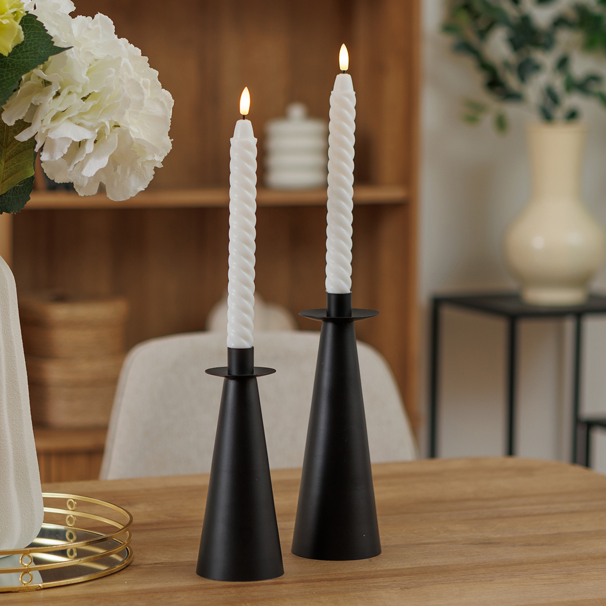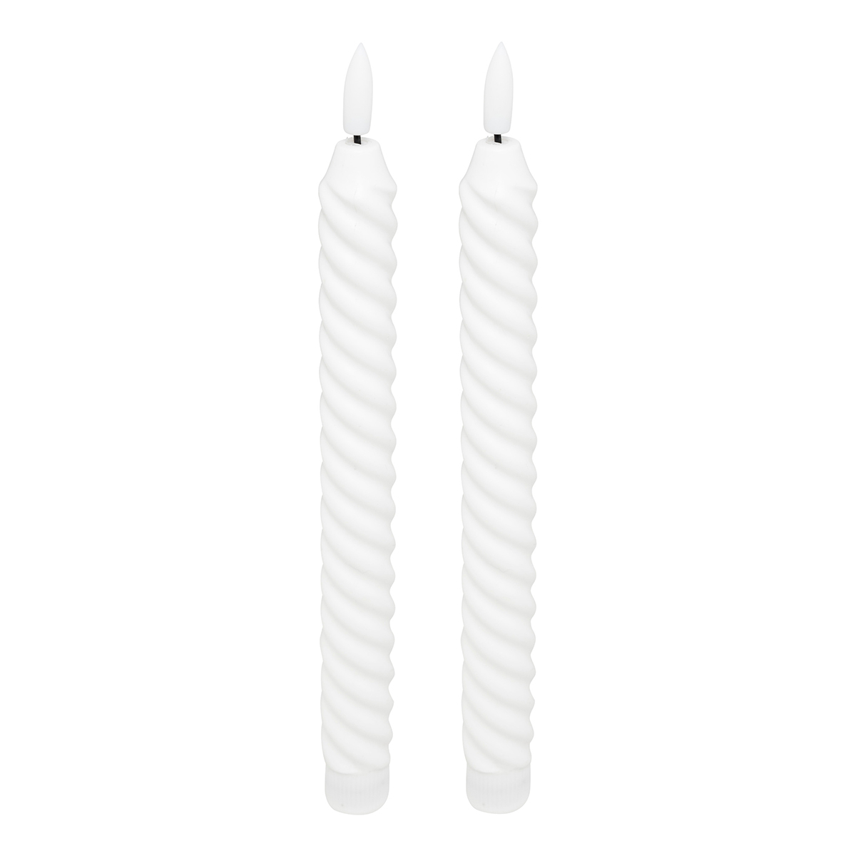 Ψηλά κεριά για κηροπήγιο με Led. Το εξωτερικό τους μέρος είναι κατασκευασμένο από πραγματικό κερί σε λευκό χρώμα, ενώ το εσωτερικό είναι από πλαστικό υλικό. Το σετ περιλαμβάνει 2 κεριά που προσομοιάζουν το φως κεριού. Διαθέτουν από 1 ενσωματωμένη πλακέτα Led. Ιδανικά για να τοποθετήσετε σε όλα τα μέρη του σπιτιού και να λειτουργούν για ώρες χωρίς το άγχος του αληθινού κεριού. Λειτουργούν με μπαταρίες 2 μπαταρίες LR03 / AAA - 1,5V (δεν περιλαμβάνονται).
