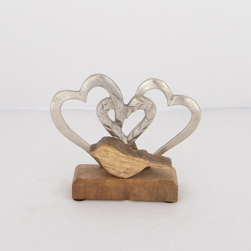 Επιτραπέζιο διακοσμητικό από την εταιρεία Estheti με μοντέρνο σχέδιο. Είναι κατασκευασμένο από ξύλο σε φυσική απόχρωση και έχει μεταλλικά στοιχεία σε ασημί χρώμα. Απεικονίζει καρδιές και πουλάκι, προσφέροντας μία αίσθηση ζεστασιάς και ρομαντισμού στον χώρο σας. Μπορεί να τοποθετηθεί στην τραπεζαρία, τη βιβλιοθήκη ή σε οποιοδήποτε άλλο σημείο επιθυμείτε, ολοκληρώνοντας έτσι τη διακόσμηση.