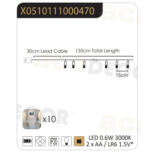 • Τεμάχια: 1 Γιρλάντα Με 10 Φωτάκια Led Μήκους 165εκ.