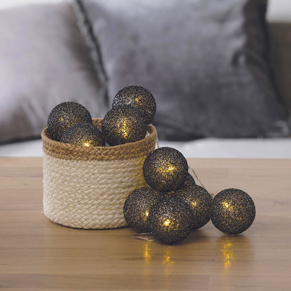 Διακοσμητική Γιρλάντα Μπαταρίας Με 10 LED Φωτάκια A-S Black Glitter 116415N