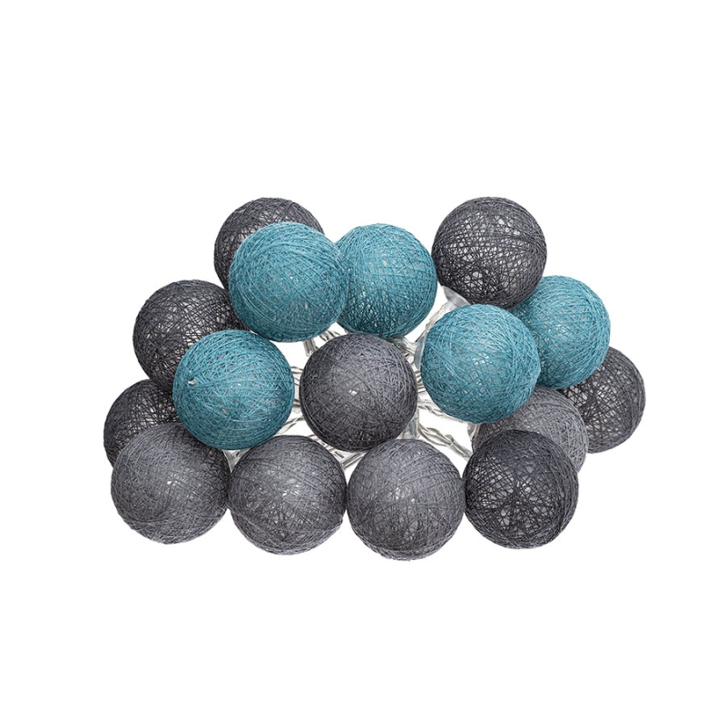 Διακοσμητική γιρλάντα με 16 Led φωτάκια. Είναι κατασκευασμένη από πλαστικό υλικό και βαμβακερό νήμα σε πετρόλ και γκρι χρώμα με καλώδιο χαλκού. Οι μπαλίτσες έχουν διάμετρο 3.5εκ. Λειτουργεί με πρίζα. Το συνολικό μήκος του καλωδίου είναι 255εκ. Ιδανική γιρλάντα για τοποθέτηση στο βρεφικό ή παιδικό δωμάτιο, στην κρεβατοκάμαρα, το σαλόνι, το γραφείο ή σε όποιον άλλο χώρο ταιριάζει.
