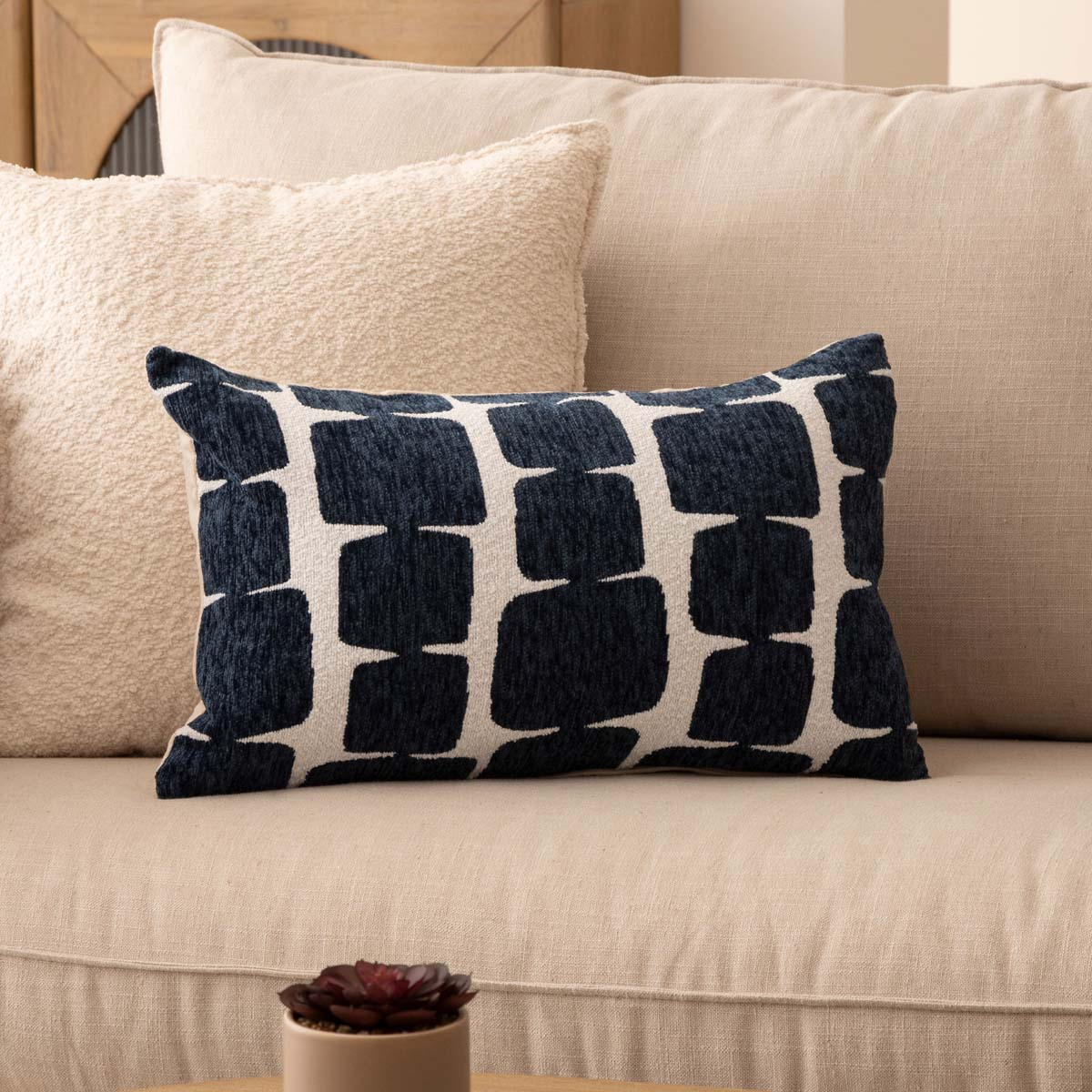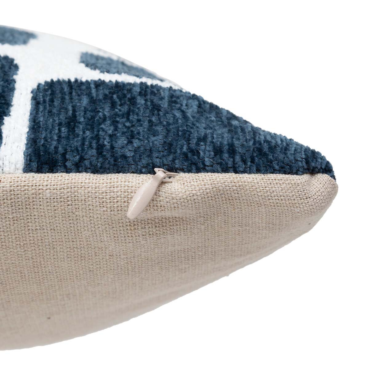 Διακοσμητική μαξιλαροθήκη 2 όψεων με μοντέρνο σχέδιο. Η μια πλευρά είναι μονόχρωμη εκρού, ενώ η άλλη είναι μπλε με λευκό σχέδιο. Το ύφασμα είναι chenille από 100% polyester που το καθιστά ιδιαίτερα μαλακό και ζεστό. Ιδανικό για τους χειμερινούς μήνες του χρόνου.