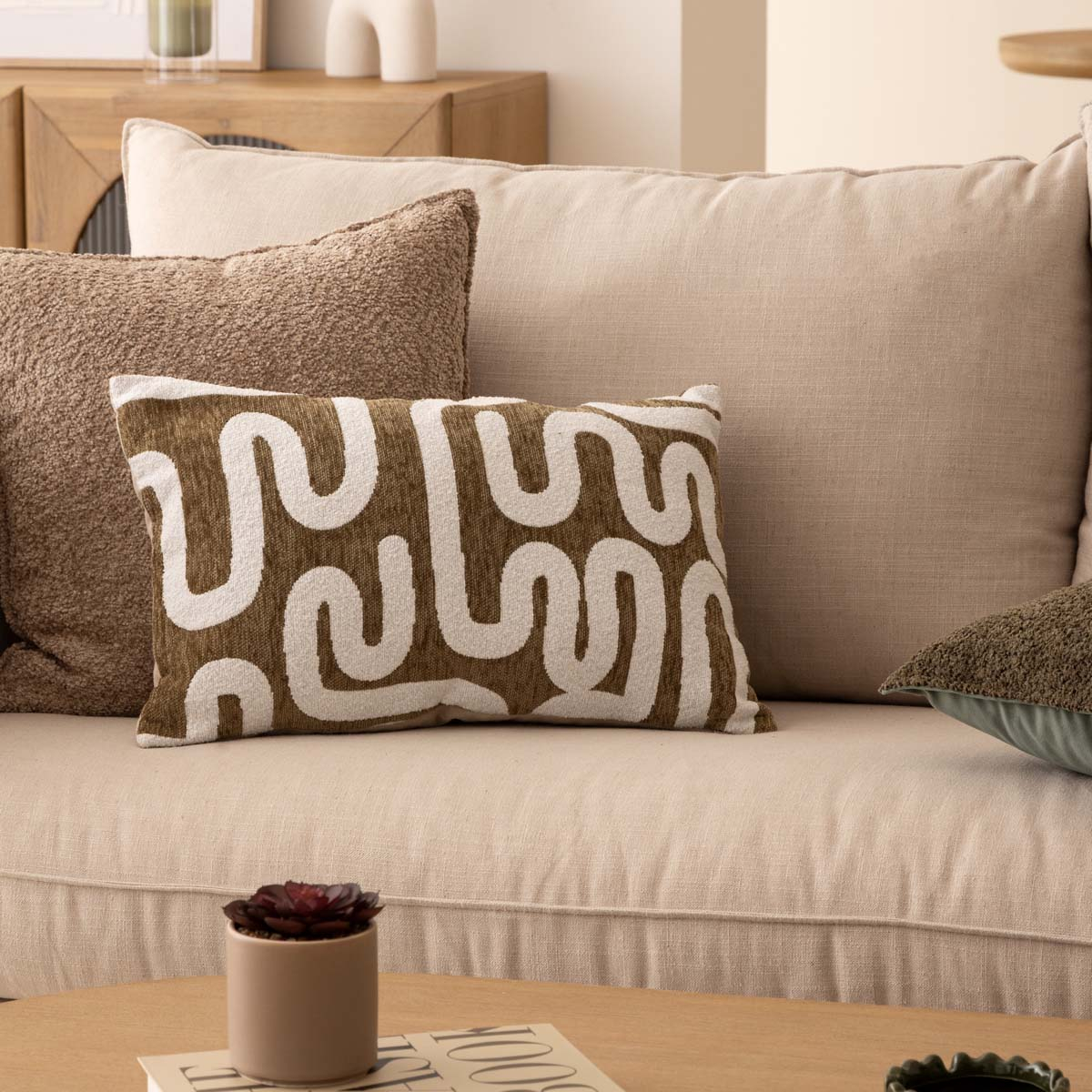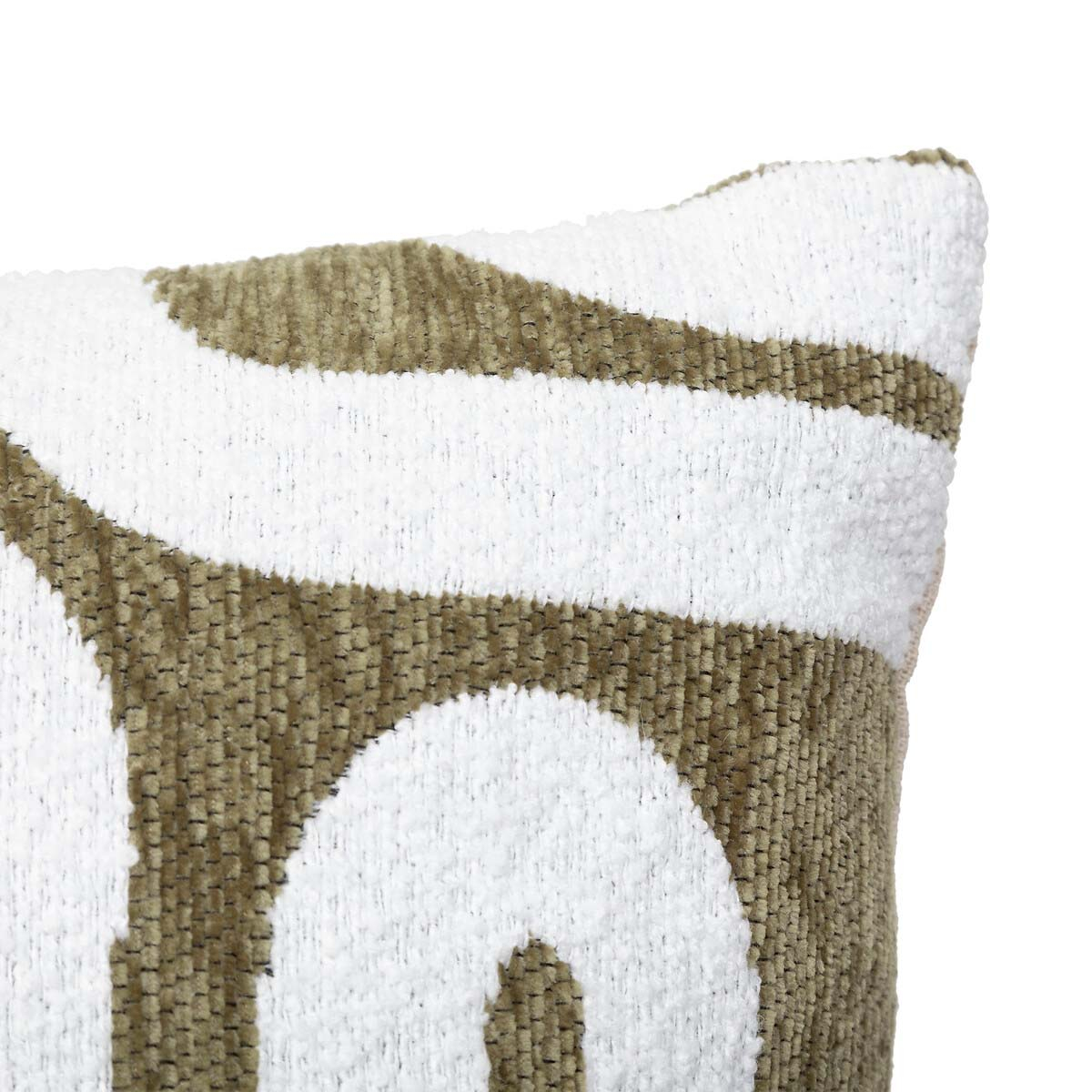 Διακοσμητική μαξιλαροθήκη 2 όψεων με μοντέρνο σχέδιο. Η μια πλευρά είναι μονόχρωμη εκρού, ενώ η άλλη είναι χακί με λευκό σχέδιο. Το ύφασμα είναι chenille από 100% polyester που το καθιστά ιδιαίτερα μαλακό και ζεστό. Ιδανικό για τους χειμερινούς μήνες του χρόνου.
