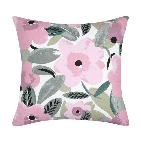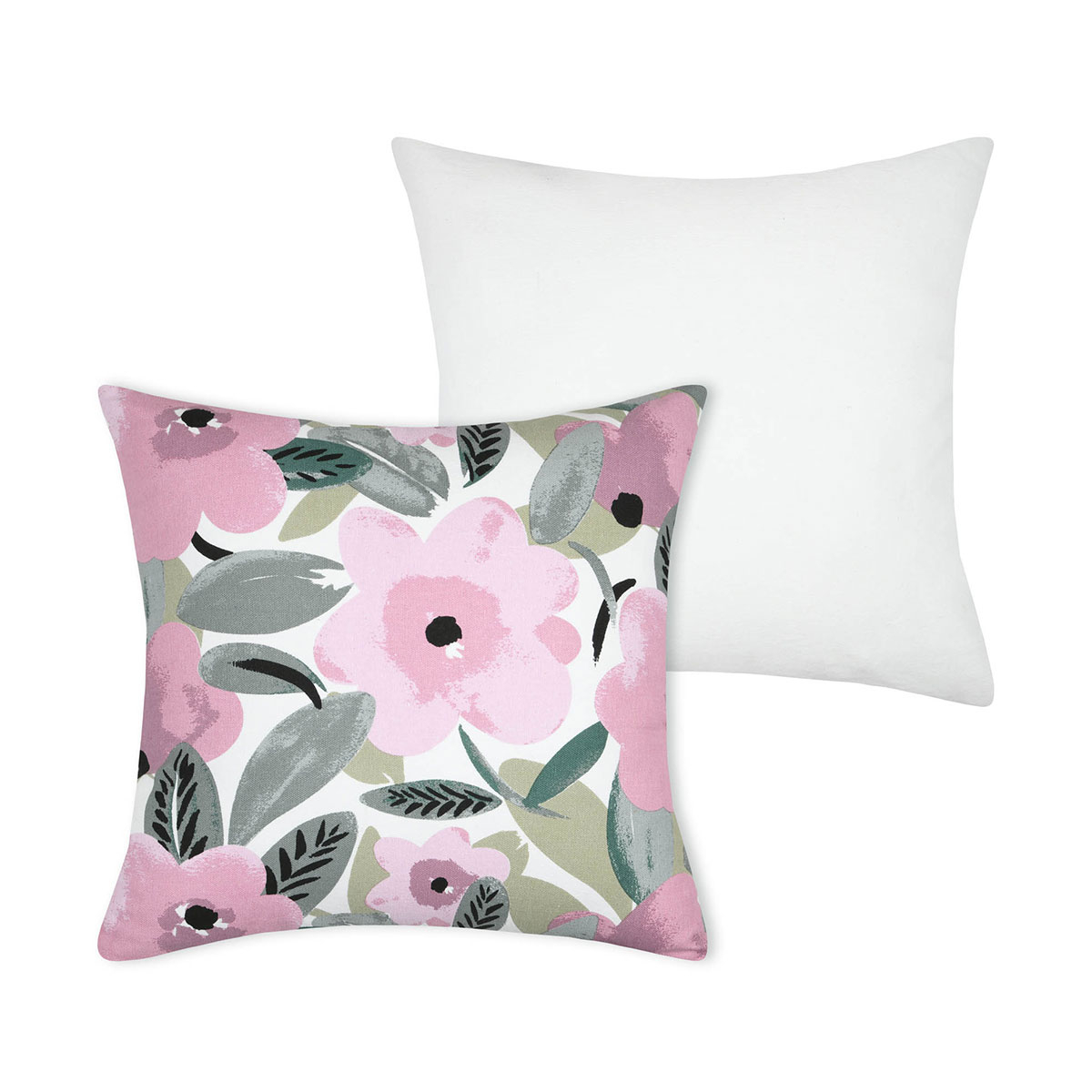 Διακοσμητική μαξιλαροθήκη 40x40 διπλής όψης. Η μια πλευρά είναι μονόχρωμη σε λευκό χρώμα ενώ η άλλη έχει φλοράλ σχέδιο σε ροζ-πράσινες αποχρώσεις με μαύρες-λευκές λεπτομέρειες. Το ύφασμα της είναι 100% βαμβάκι και διαθέτει φερμουάρ. Ανανεώστε εύκολα και γρήγορα τον χώρο του σπιτιού σας, δίνοντας του μια πιο φρέσκια και ανάλαφρη διάθεση.