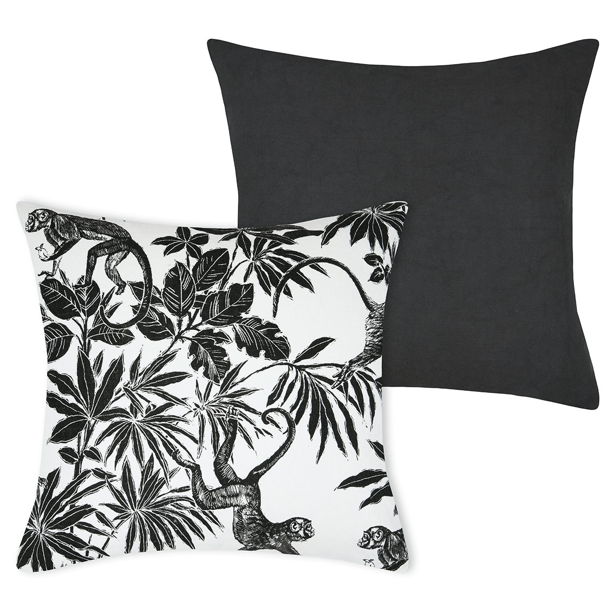 Διακοσμητική μαξιλαροθήκη 40x40 διπλής όψης. Η μια πλευρά είναι μονόχρωμη μαύρη ενώ η άλλη έχει λευκό tropical σχέδιο σε μαύρο φόντο. Το ύφασμα της είναι 100% βαμβάκι και διαθέτει φερμουάρ. Ανανεώστε εύκολα και γρήγορα τον χώρο του σπιτιού σας, δίνοντας του μια πιο φρέσκια και ανάλαφρη διάθεση. Συνδυάστε τη με τα υπόλοιπα είδη του ίδιου σετ για ένα ξεχωριστό αποτέλεσμα στο χώρο σας.