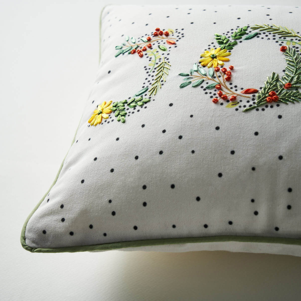 Διακοσμητική μαξιλαροθήκη από την εταιρεία Gofis Home σε λευκό χρώμα με πολύχρωμες κεντητές λεπτομέρειες. Είναι κατασκευασμένη από 100% polyester και διαθέτει φερμουάρ. Ιδανική για να δώσει μία ανοιξιάτικη νότα στη διακόσμησή σας.