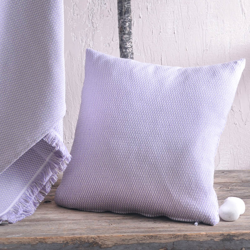 Διακοσμητική μαξιλαροθήκη της εταιρείας Rythmos σε λιλά χρώμα με λευκές λεπτομέρειες και μοντέρνο σχέδιο. Το ζακάρ ύφασμα από 80% βαμβάκι και 20% polyester την καθιστά ανθεκτική. Συνδυάστε την με τα υπόλοιπα προϊόντα του ίδιου σχεδίου για ένα ολοκληρωμένο αποτέλεσμα.