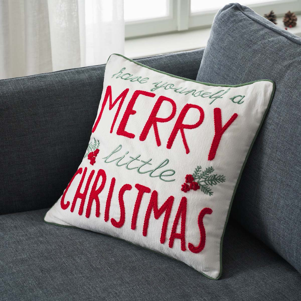 Διακοσμητική χριστουγεννιάτικη μαξιλαροθήκη από την εταιρεία Gofis Home σε λευκό χρώμα με κόκκινες και πράσινες λεπτομέρειες. Είναι κατασκευασμένη από 100% polyester με ανάγλυφες λεπτομέρειες. Διαθέτει φερμουάρ για να αφαιρείται η γέμιση. Ιδανική για να ανανεώσει την χριστουγεννιάτικη διακόσμηση του καθιστικού σας.