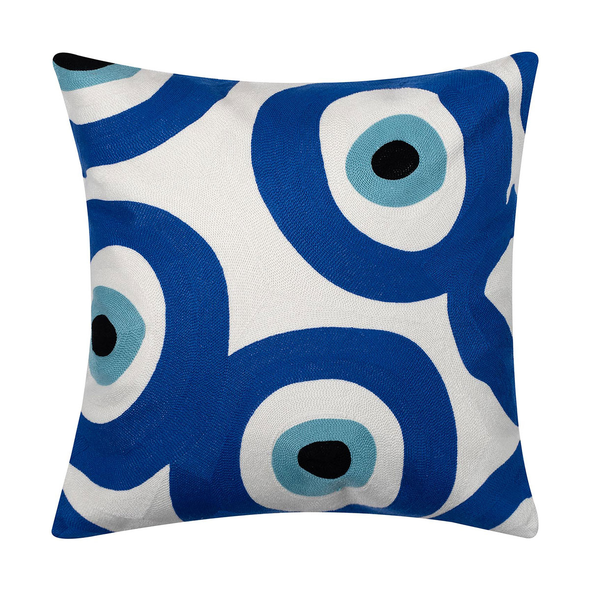 Διακοσμητική μαξιλαροθήκη από την εταιρεία Silk Fashion σε λευκό φόντο με μπλε-γαλάζιο μοντέρνο κεντητό σχέδιο. Είναι κατασκευασμένη από 100% βαμβακερό ύφασμα. Διαθέτει πρακτικό φερμουάρ. Ανθεκτική και όμορφη μαξιλαροθήκη που θα ομορφύνει και θα ανανεώσει την αισθητική του χώρου σας εύκολα και γρήγορα.