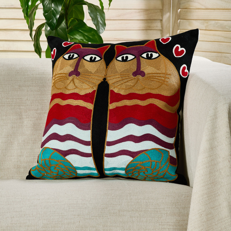 Διακοσμητική μαξιλαροθήκη από την εταιρεία Whitegg σε μαύρο φόντο με πολύχρωμο μοντέρνο σχέδιο. Το σχέδιο είναι κεντητό. Έχει σύνθεση από 100% βαμβάκι που προσφέρει απαλότητα και ανθεκτικότητα. Ιδανική για να διακοσμήσετε το σαλόνι ή την κρεβατοκάμαρά σας.