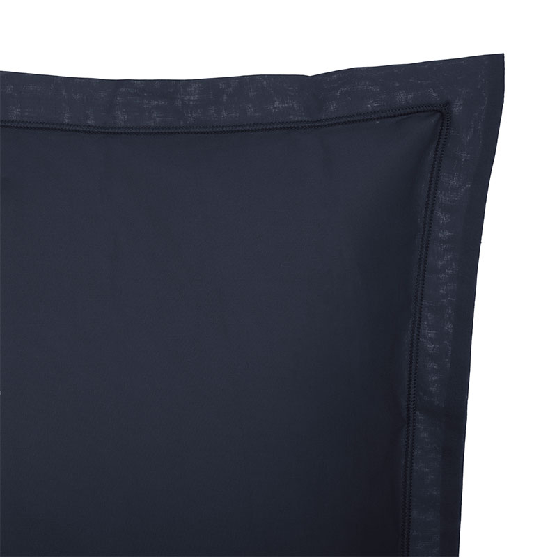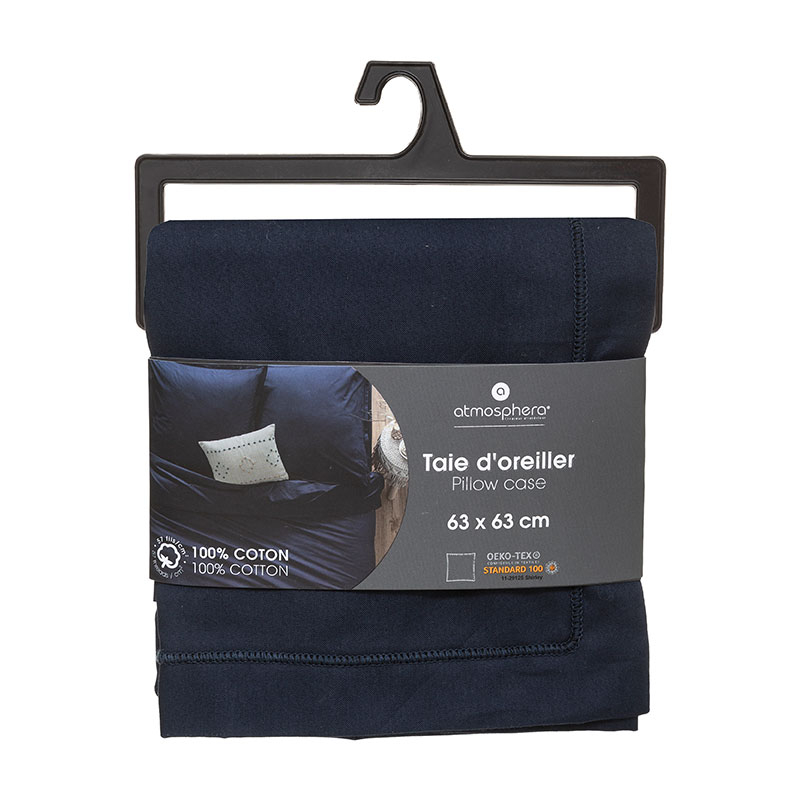 Διακοσμητική μαξιλαροθήκη Oxford σε μπλε χρώμα. Το περιθώριο της μαξιλαροθήκης έχει παλαιωμένο εφέ και διαθέτει φερμουάρ. Είναι κατασκευασμένη από 100% βαμβάκι. Ανανεώστε την κρεβατοκάμαρα, το σαλόνι, το γραφείο, και όποιον άλλο χώρο επιθυμείτε, εύκολα και γρήγορα. Προϊόν με ετικέτα OEKO-TEX.