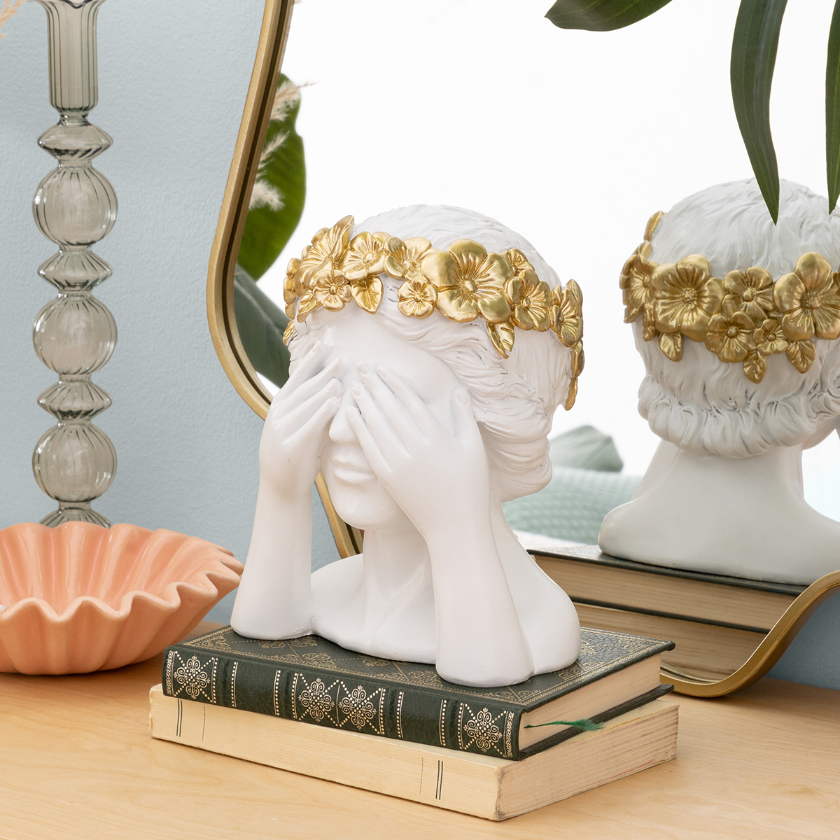 Επιτραπέζια διακοσμητική προτομή γυναίκας που θα χαρίσει μοναδικό ύφος στον χώρο σας. Είναι κατασκευασμένο από polyresin υλικό σε λευκό χρώμα με χρυσές λεπτομέρειες. Ιδανικό για να τοποθετηθεί στο τραπεζάκι του σαλονιού, τον μπουφέ, το γραφείο και όπου αλλού ταιριάζει.