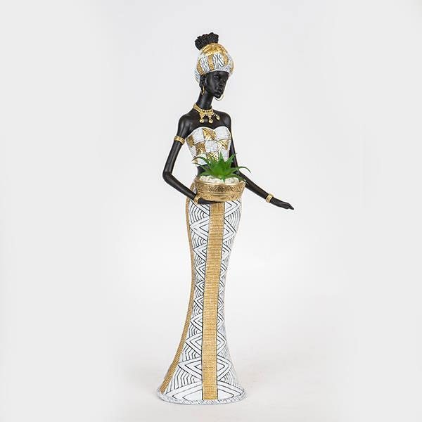 Επιτραπέζιο διακοσμητικό από την Estheti σε μαύρο χρώμα με μπεζ λεπτομέρειες. Απεικονίζει τη φιγούρα μιας γυναίκας. Είναι κατασκευασμένο από πολυρεζίνη. Προσφέρει μία έθνικ αισθητική πινελιά σε κάθε προσωπικό ή επαγγελματικό χώρο. Τοποθετήστε το στην τραπεζαρία, την βιβλιοθήκη ή όπου αλλού επιθυμείτε για να ολοκληρώσετε την διακόσμηση του χώρου σας.