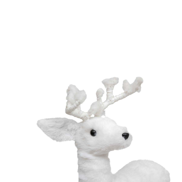 Επιτραπέζιο διακοσμητικό ελάφι με τεχνητή γούνα στο εξωτερικό μέρος και πλαστικό στο εσωτερικό. Κατάλληλο να στολίσει το παιδικό δωμάτιο ή να ολοκληρώσει την χριστουγεννιάτικη διακόσμηση του χώρου σας.