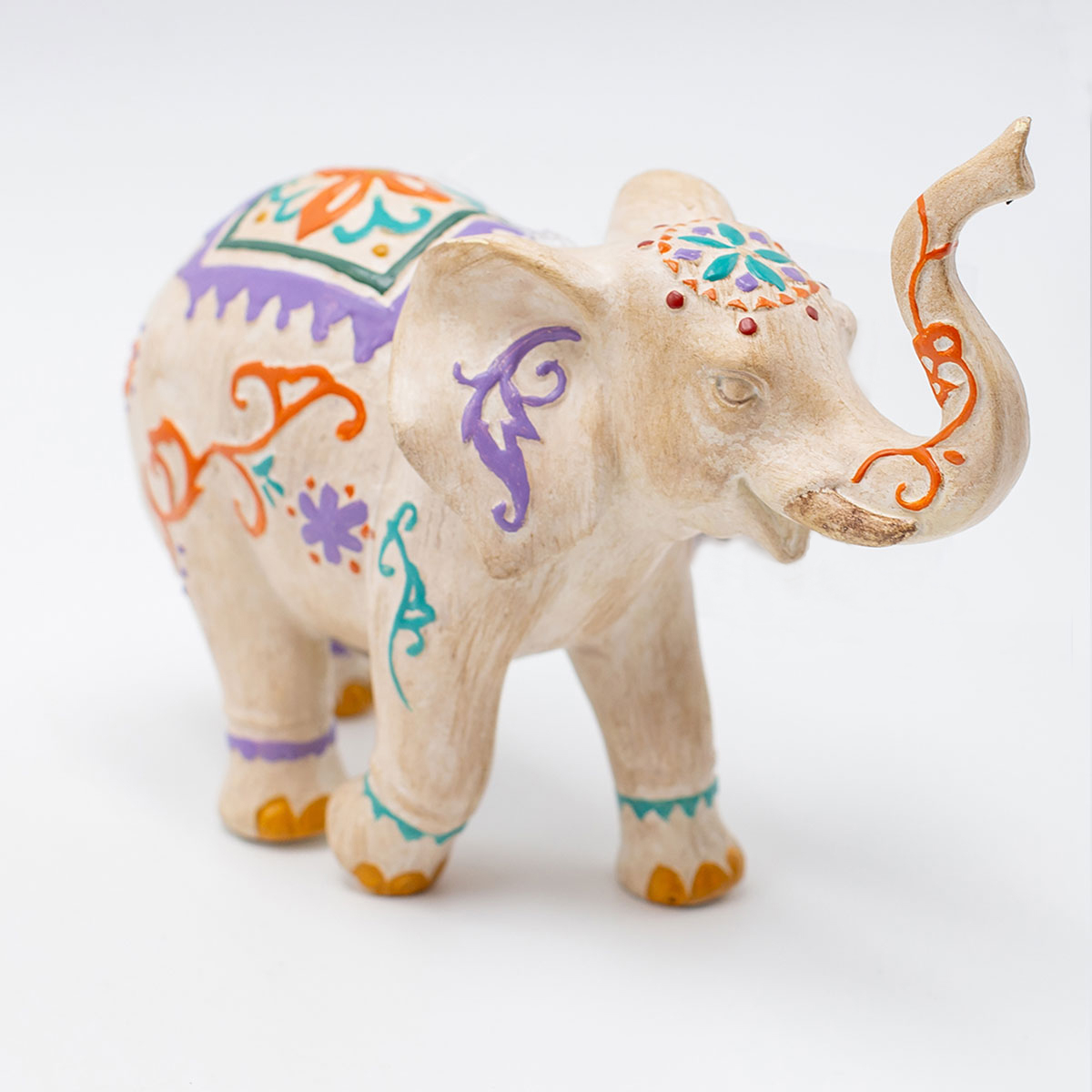 Επιτραπέζιο διακοσμητικό από την εταιρεία Estheti με έθνικ σχέδιο. Είναι κατασκευασμένο από πολυρεζίνη σε μπεζ χρώμα με πολύχρωμες λεπτομέρειες. Απεικονίζει ελέφαντα. Διαθέτει μαύρη βάση. Μπορεί να τοποθετηθεί στην τραπεζαρία, τη βιβλιοθήκη ή σε οποιοδήποτε άλλο σημείο επιθυμείτε, ολοκληρώνοντας έτσι τη διακόσμηση.