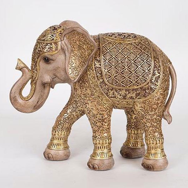 Επιτραπέζιο διακοσμητικό από την Estheti σε χρυσό χρώμα και απεικονίζει ελέφαντα. Είναι κατασκευασμένο από πολυρεζίνη. Προσφέρει μία έθνικ πινελιά σε κάθε προσωπικό ή επαγγελματικό χώρο. Τοποθετήστε το στην τραπεζαρία, την βιβλιοθήκη ή όπου αλλού επιθυμείτε για να ολοκληρώσετε την διακόσμηση του χώρου σας.