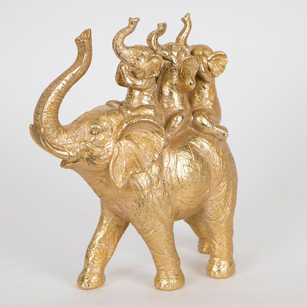 Επιτραπέζιο διακοσμητικό από την Estheti σε χρυσό χρώμα και σχήμα ελέφαντες με έθνικ ύφος. Είναι κατασκευασμένο από κεραμικό υλικό. Τοποθετήστε το στην τραπεζαρία, την βιβλιοθήκη ή όπου αλλού επιθυμείτε για να ολοκληρώσετε την διακόσμηση του χώρου σας.