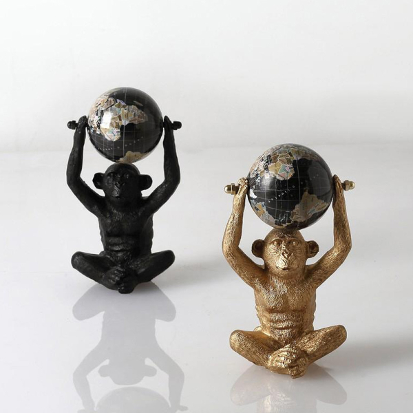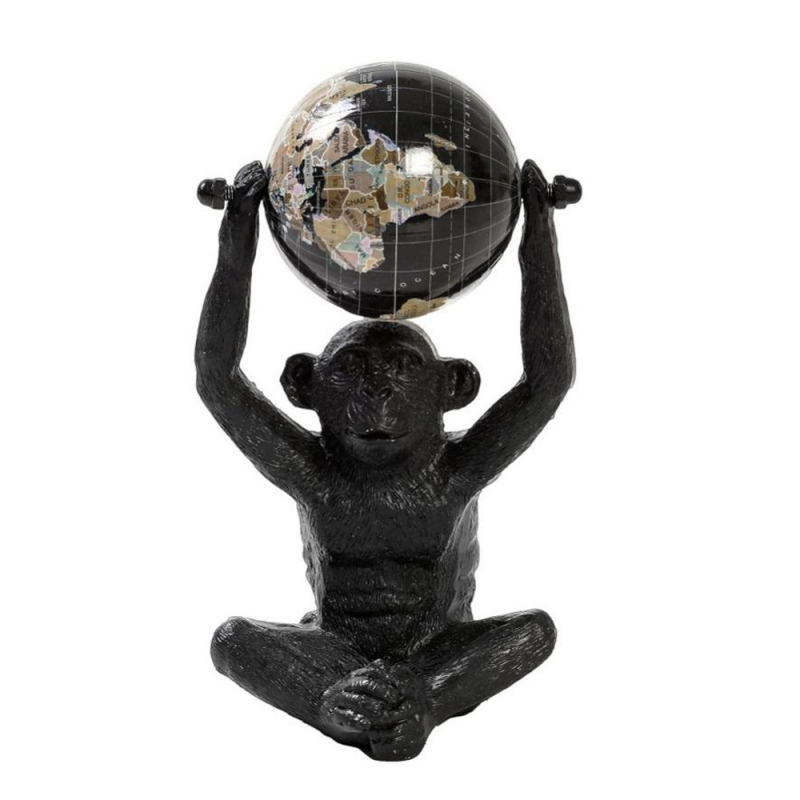 Επιτραπέζιο διακοσμητικό από την εταιρεία Espiel σε σχήμα μαιμού με υδρόγειο σφαίρα. Είναι κατασκευασμένο από polyresin σε μαύρο χρώμα. Ιδανικό για να διακοσμήσετε μοναδικά οποιονδήποτε χώρο του σπιτιού σας.