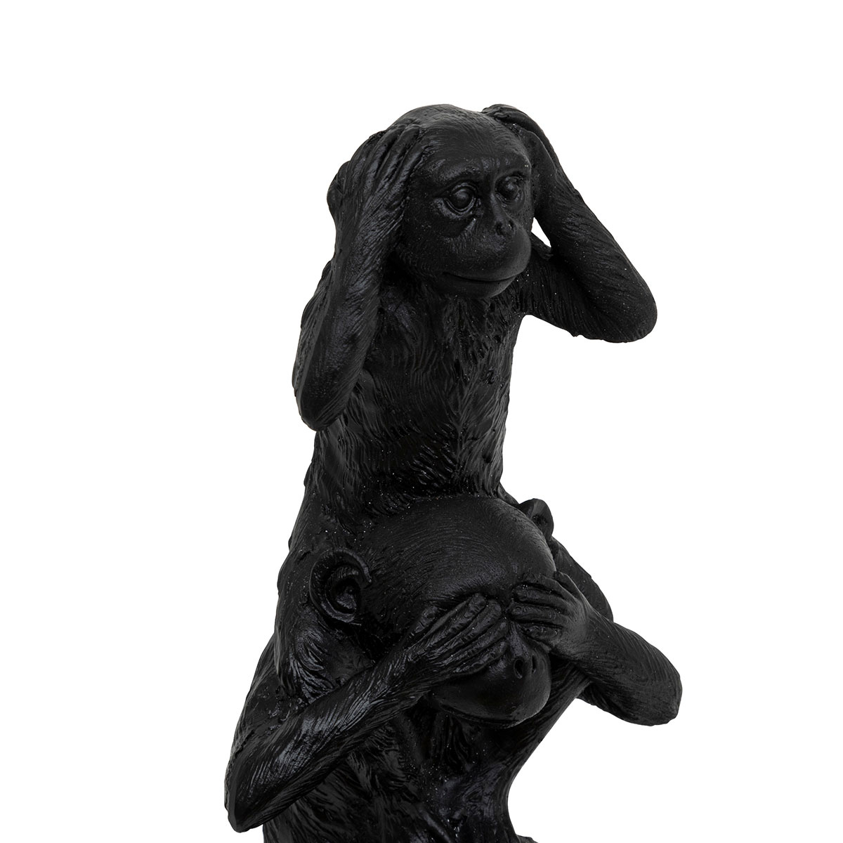 Επιτραπέζια διακοσμητική φιγούρα που θα χαρίσει μοντέρνα διάθεση στον χώρο σας. Είναι κατασκευασμένη από polyresin σε μαύρο χρώμα και σχήμα μαϊμούδων. Ιδανικά για να τοποθετηθούν στο τραπεζάκι του σαλονιού, τον μπουφέ, το γραφείο και όπου αλλού ταιριάζουν.