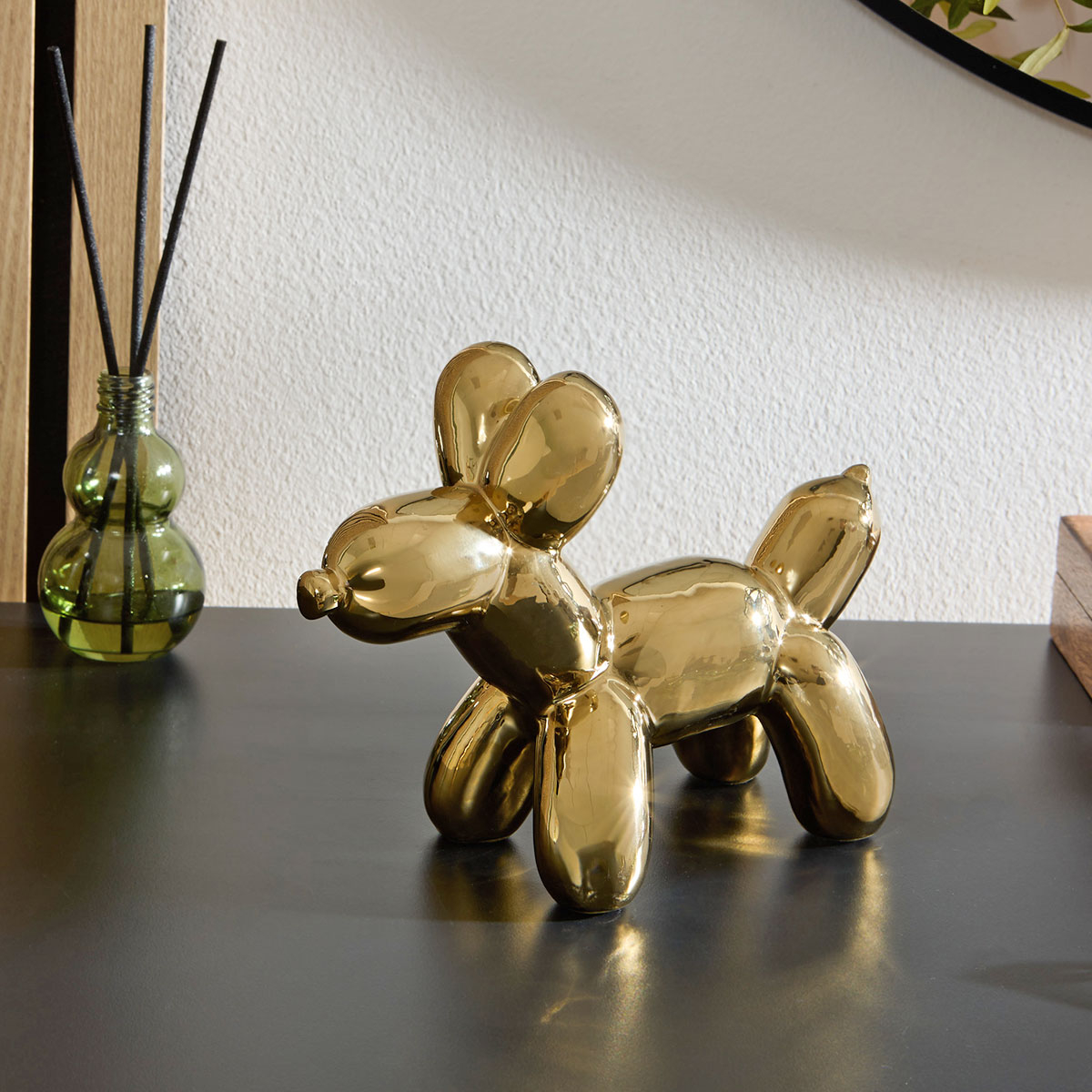 Επιτραπέζιο διακοσμητικό με μοντέρνο σχεδιασμό. Είναι κατασκευασμένο από κεραμικό υλικό σε χρυσό χρώμα και σχήμα σκύλου Poodle. Ιδανικό για να διακοσμήσετε μοναδικά οποιονδήποτε χώρο του σπιτιού σας. Συνδυάστε το με τα υπόλοιπα είδη του ίδιου σετ για ένα ολοκληρωμένο αποτέλεσμα.