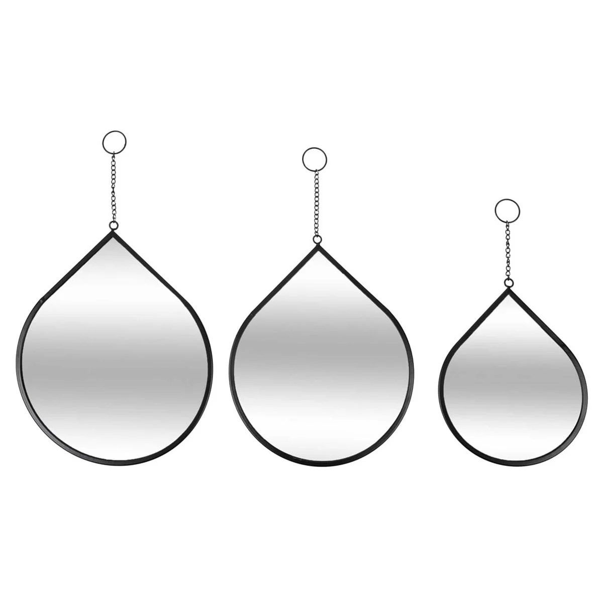 Επιτοίχιοι καθρέφτες σε σχήμα δάκρυ με μίνιμαλ ύφος. Το πλαίσιο είναι μεταλλικό σε μαύρο χρώμα ενώ η πλάτη από ξύλο MDF_E1. Διαθέτουν αλυσίδα για κρέμασμα στο επάνω μέρος. Iδανικοί για να διακοσμήσουν το υπνοδωμάτιο, το χωλ, το γραφείο, ή σε όποιο άλλο χώρο ταιριάζουν. Μπορούν να λειτουργήσουν ως χρηστικά και ως διακοσμητικά στοιχεία στο χώρο σας.