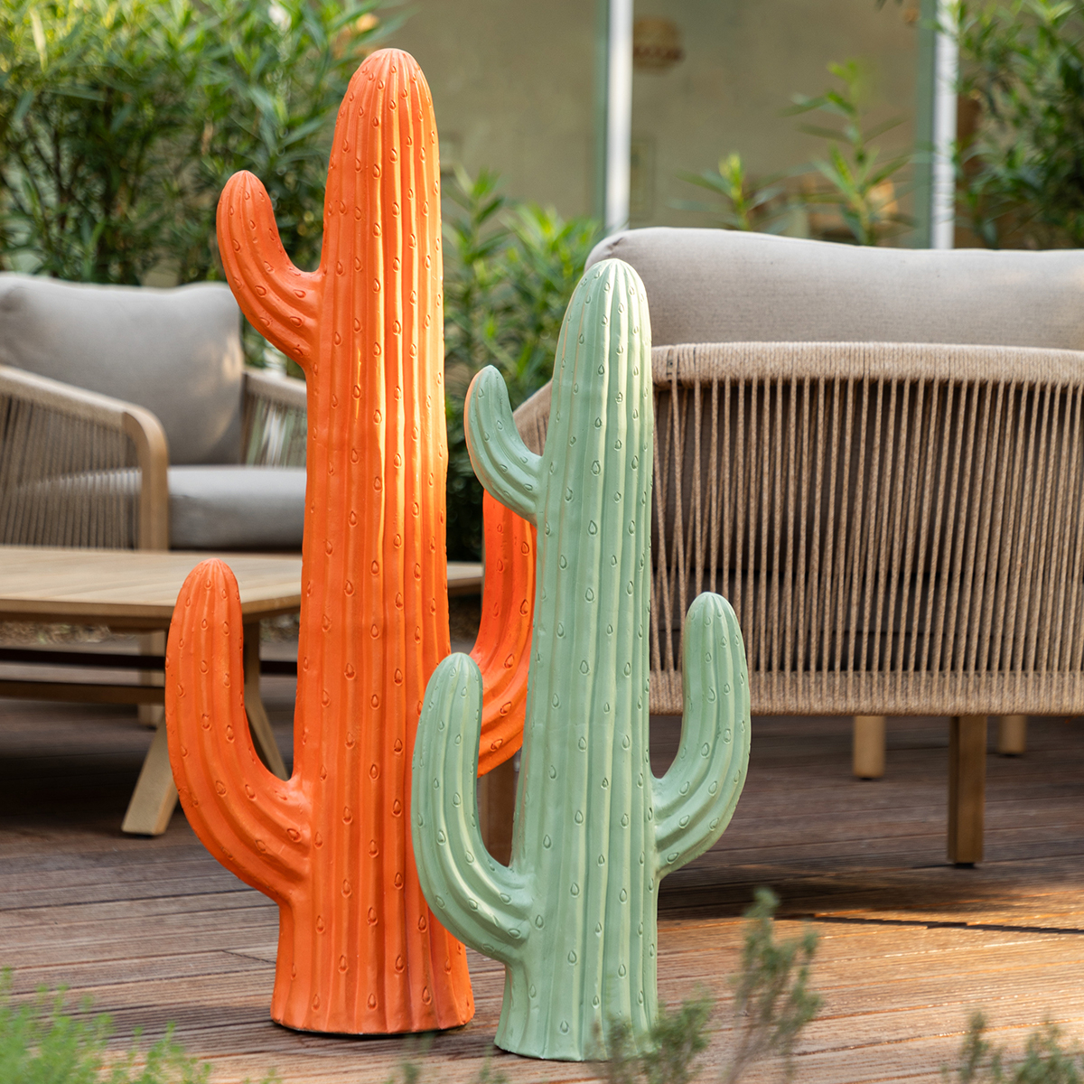 Επιτραπέζιο ή επιδαπέδιο διακοσμητικό χώρου σε σχήμα κάκτου, που θα χαρίσει μοναδικό ύφος στον χώρο σας. Είναι κατασκευασμένο από κεραμικό υλικό σε πορτοκαλί χρώμα με ανάγλυφο σχέδιο. Ιδανικό για να τοποθετηθεί στο σαλόνι, το γραφείο, τον κήπο και όπου αλλού ταιριάζει. Συνδυάστε το με τα υπόλοιπα προϊόντα της ίδιας σειράς για ένα ολοκληρωμένο αποτέλεσμα στο χώρο σας.