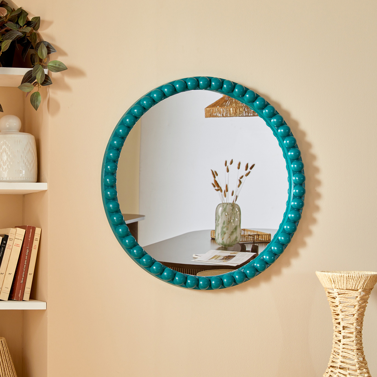 Επιτοίχιος καθρέφτης με μοντέρνο στυλ, ιδανικός για να διακοσμήσει το υπνοδωμάτιο, το χωλ, το γραφείο, ή σε όποιο άλλο χώρο ταιριάζει. Είναι κατασκευασμένος από πλαστικό υλικό σε πράσινο χρώμα με ανάγλυφο σχέδιο. Μπορεί να λειτουργήσει ως χρηστικό και ως διακοσμητικό στοιχείο στο χώρο σας.