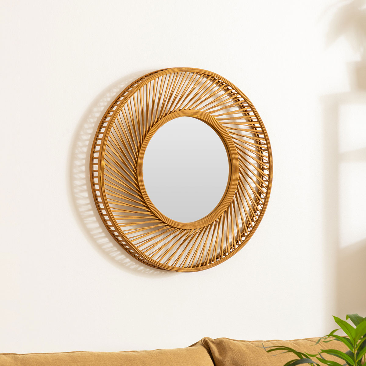 Στρογγυλός καθρέφτης τοίχου ιδανικός για τοποθέτηση στο υπνοδωμάτιο, το χολ, το γραφείο ή σε όποιον άλλο χώρο σας είναι απαραίτητος. Ο σκελετός είναι κατασκευασμένος από ξύλο bamboo σε φυσική απόχρωση και μοντέρνο στυλ. Το πίσω μέρος είναι από MDF_E1. Η συνολική διάμετρος του καθρέφτη είναι 72εκ. ενώ ο καθρέφτης έχει διάμετρο 38εκ. Μπορεί να λειτουργήσει ως χρηστικό και ως διακοσμητικό στοιχείο στο χώρο σας.