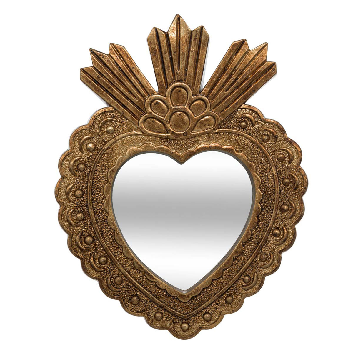 Επιτοίχιος καθρέφτης με μοντέρνο σχεδιασμό σε σχήμα καρδιάς, ιδανικός για να διακοσμήσει το υπνοδωμάτιο, το χωλ ή σε όποιο άλλο χώρο ταιριάζει. Το πλαίσιο είναι κατασκευασμένο από polyresin σε χρυσό χρώμα. Διαθέτει υποδοχή για κρέμασμα στο πίσω μέρος. Μπορεί να λειτουργήσει ως χρηστικό και ως διακοσμητικό στοιχείο στο χώρο σας.