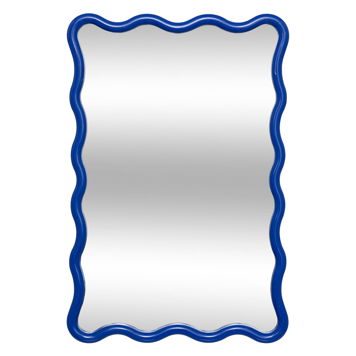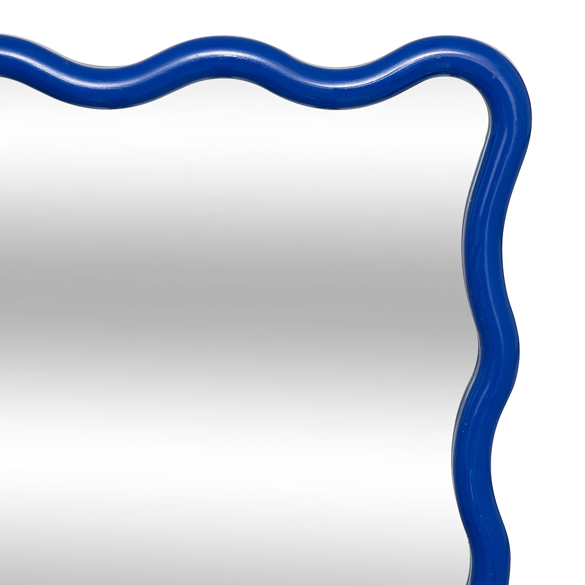 Επιτοίχιος καθρέφτης με μοντέρνο στυλ, ιδανικός για να διακοσμήσει το υπνοδωμάτιο, το χωλ, το γραφείο, ή σε όποιο άλλο χώρο ταιριάζει. Το πλαίσιο είναι κατασκευασμένο από πλαστικό υλικό σε μπλε χρώμα με κυματιστό σχέδιο. Διαθέτει υποδοχή για κρέμασμα στο πίσω μέρος σε κάθετη και οριζόντια μορφή. Μπορεί να λειτουργήσει ως χρηστικό και ως διακοσμητικό στοιχείο στο χώρο σας.
