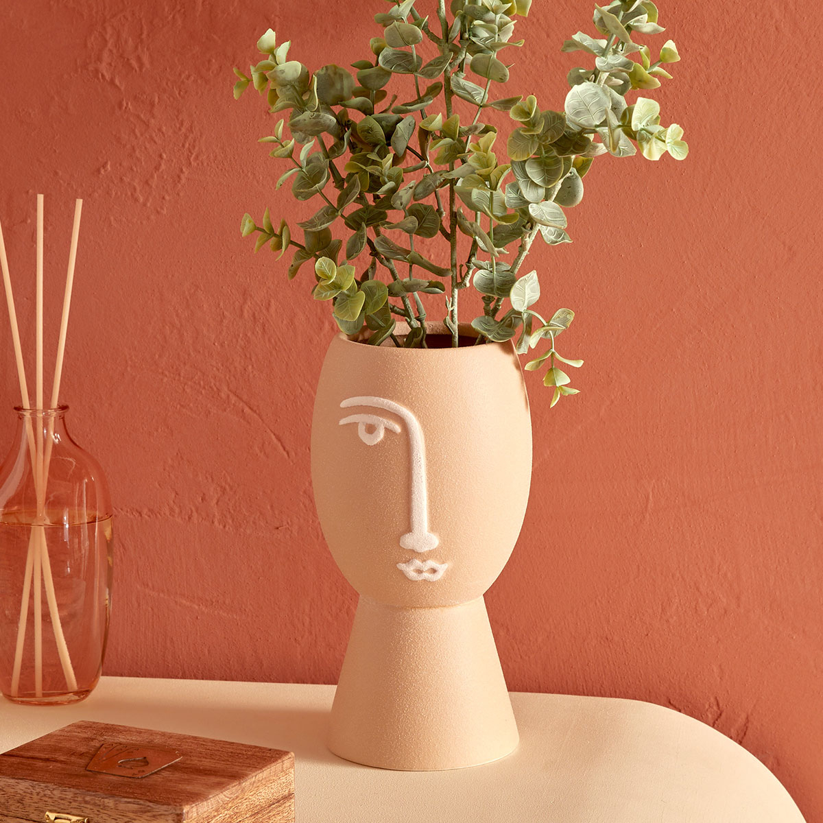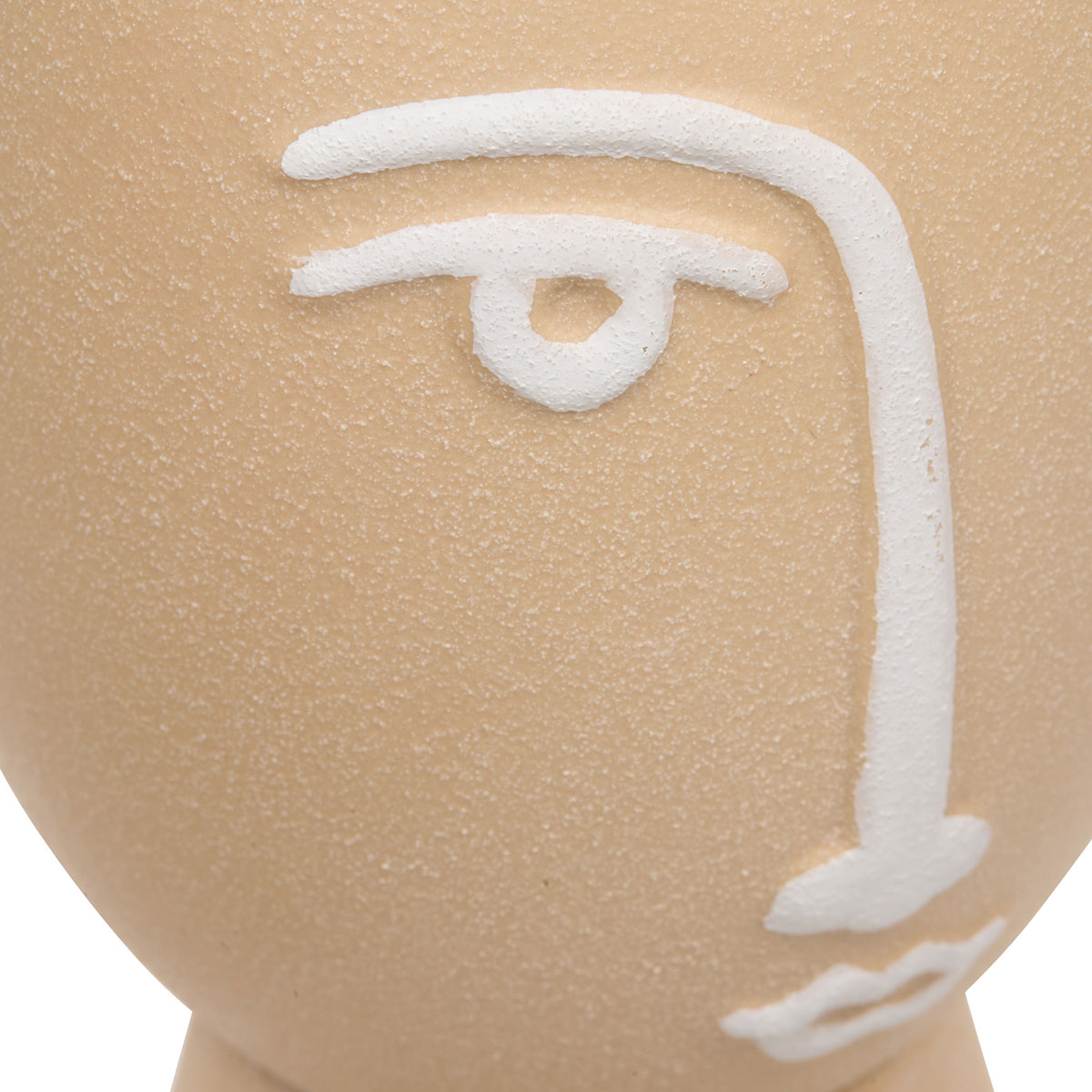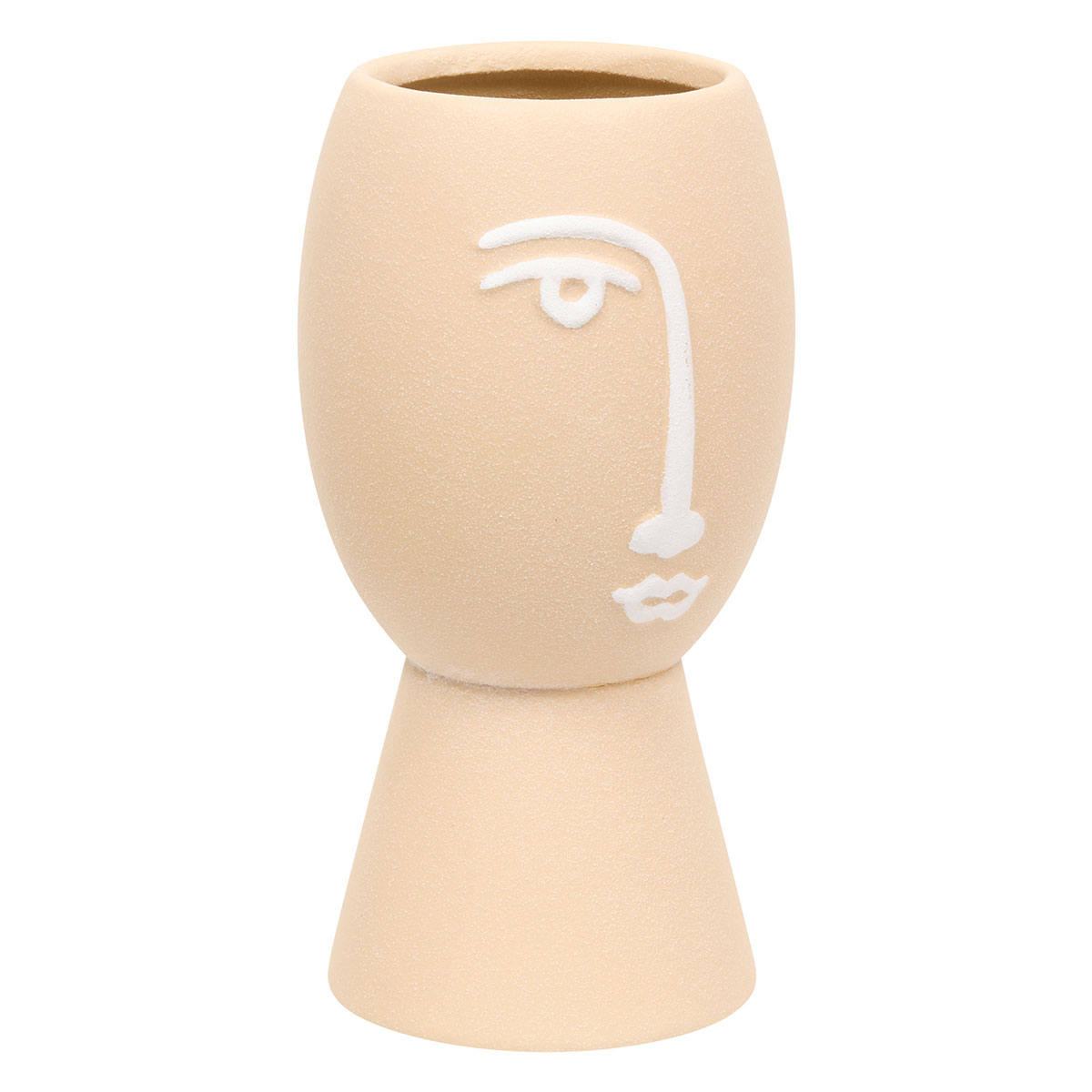Διακοσμητικό βάζο με μοντέρνα αισθητική και σχέδιο προσώπου. Είναι κατασκευασμένο από κεραμικό υλικό σε μπεζ χρώμα. Ιδανικό για το σαλόνι, την τραπεζαρία ή οποιονδήποτε άλλο χώρο επιθυμείτε να διακοσμήσετε και να δώσετε στυλ. Συνδυάστε το με τα υπόλοιπα είδη της ίδιας συλλογής για ένα ολοκληρωμένο αποτέλεσμα στο χώρο σας.