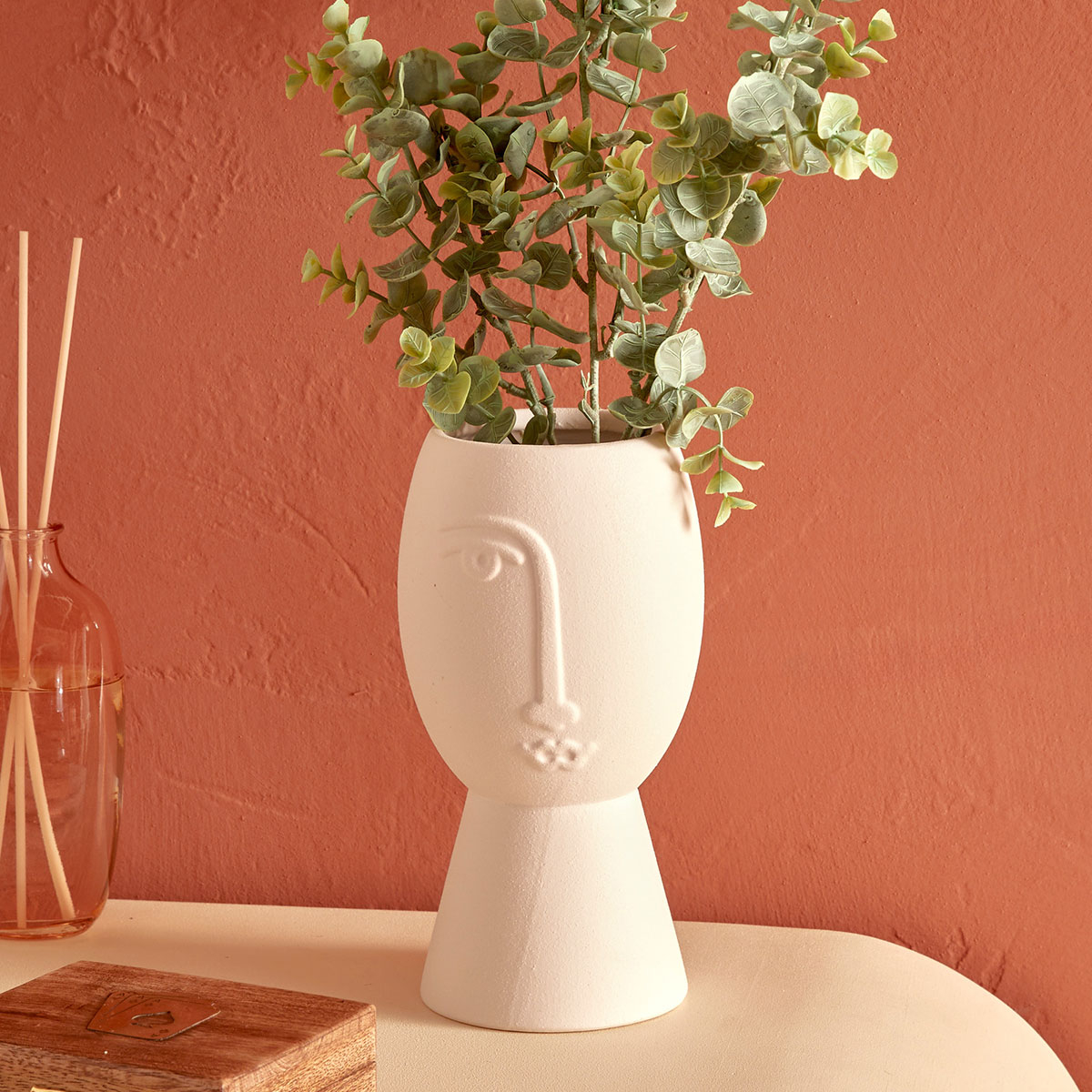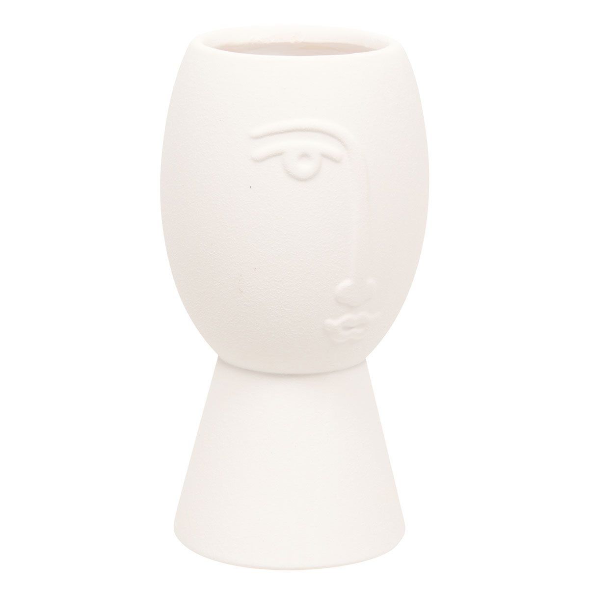 Διακοσμητικό βάζο με μοντέρνα αισθητική και σχέδιο προσώπου. Είναι κατασκευασμένο από κεραμικό υλικό σε λευκό χρώμα. Ιδανικό για το σαλόνι, την τραπεζαρία ή οποιονδήποτε άλλο χώρο επιθυμείτε να διακοσμήσετε και να δώσετε στυλ. Συνδυάστε το με τα υπόλοιπα είδη της ίδιας συλλογής για ένα ολοκληρωμένο αποτέλεσμα στο χώρο σας.