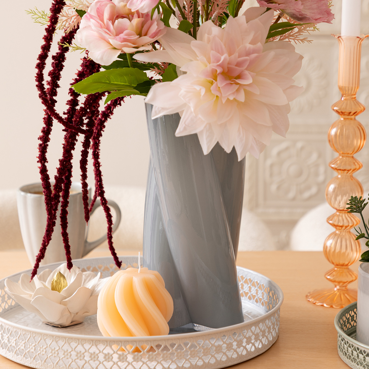 Διακοσμητικό βάζο με μίνιμαλ σχεδιασμό. Είναι κατασκευασμένο από γυαλί σε γκρι απόχρωση και ακανόνιστο σχήμα. Ιδανικό για το σαλόνι, την τραπεζαρία ή οποιονδήποτε άλλο χώρο επιθυμείτε να διακοσμήσετε και να δώσετε στυλ. Συνδυάστε το με τα υπόλοιπα είδη της ίδιας συλλογής για ένα ολοκληρωμένο αποτέλεσμα στο χώρο σας.