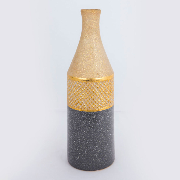 Διακοσμητικό βάζο από την εταιρεία Estheti σε γκρι-χρυσό χρώμα με μοντέρνο σχεδιασμό. Είναι κατασκευασμένο από κεραμικό υλικό. Μπορεί να χρησιμοποιηθεί για να τοποθετήσετε μέσα λουλούδια ή μόνο του σαν διακοσμητικό. Τοποθετήστε το στο σαλόνι, την τραπεζαρία ή σε οποιοδήποτε άλλο σημείο για να το διακοσμήσετε.