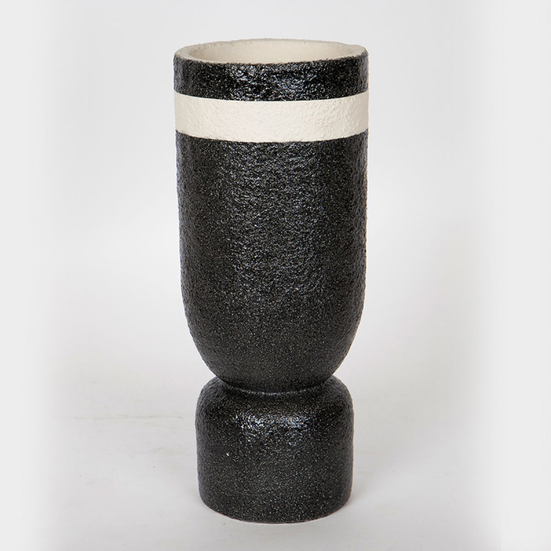 Διακοσμητικό βάζο από την εταιρεία Estheti σε μαύρο χρώμα με λευκή λεπτομέρεια και μοντέρνο σχεδιασμό. Είναι κατασκευασμένο από τσιμέντο. Μπορεί να χρησιμοποιηθεί για να τοποθετήσετε μέσα λουλούδια ή μόνο του σαν διακοσμητικό. Τοποθετήστε το στο σαλόνι, την τραπεζαρία ή σε οποιοδήποτε άλλο σημείο για να το διακοσμήσετε.