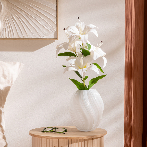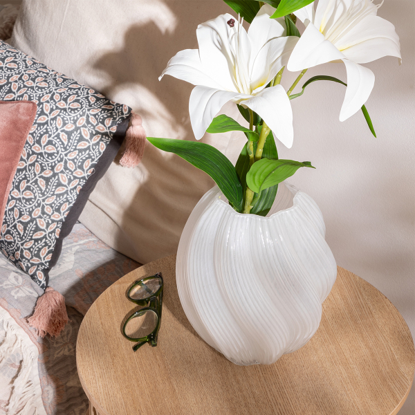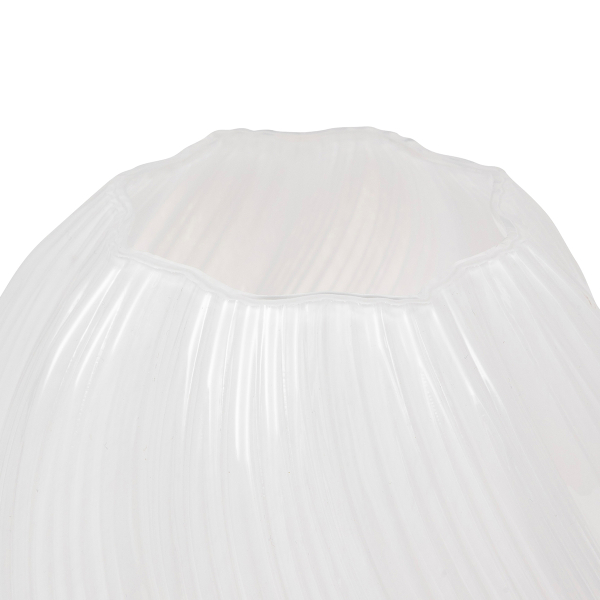 Βάζο διακόσμησης με μοντέρνο σχεδιασμό, κατασκευασμένο από γυαλί σε λευκό χρώμα. Ιδανικό για να τοποθετηθεί και να διακοσμήσει την τραπεζαρία, το τραπεζάκι σαλονιού ή τον μπουφέ. Συνδυάστε το με τα υπόλοιπα είδη της ίδιας συλλογής για ένα ολοκληρωμένο αποτέλεσμα στο χώρο σας.