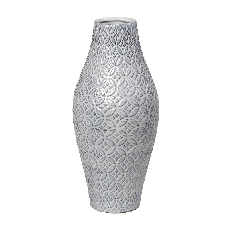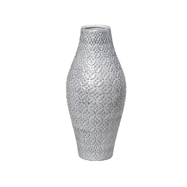 Διακοσμητικό βάζο από την εταιρεία Espiel σε γκρι χρώμα με ανάγλυφο vintage σχέδιο. Είναι κατασκευασμένο από κεραμικό υλικό. Τοποθετήστε το στην τραπεζαρία ή στο τραπεζάκι του σαλονιού σας και κλέψτε τις εντυπώσεις των καλεσμένων σας. Μπορεί να χρησιμοποιηθεί για να τοποθετήσετε μέσα ψεύτικα διακοσμητικά λουλούδια. Συνδυάστε το με τα υπόλοιπα είδη της ίδιας σειράς για ένα ολοκληρωμένο σετ.