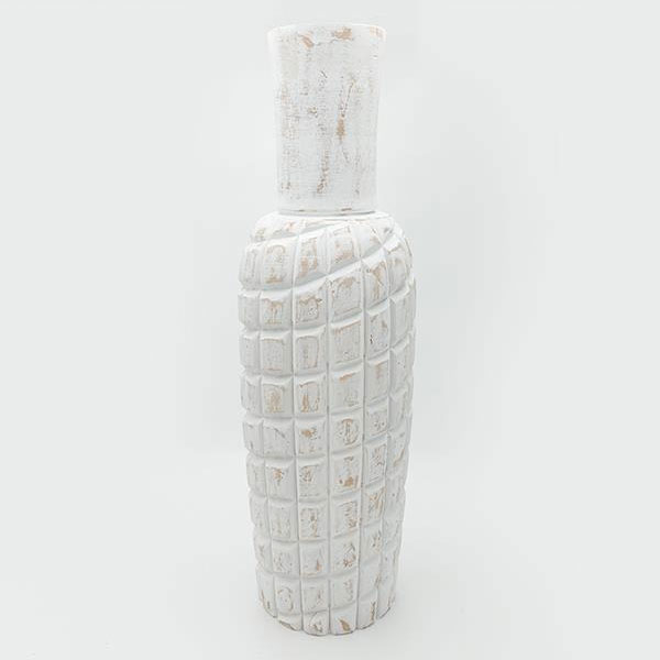 Διακοσμητικό βάζο από την εταιρεία Estheti σε λευκό χρώμα με vintage σχέδιο. Είναι κατασκευασμένο από ξύλινο υλικό. Μπορεί να χρησιμοποιηθεί για να τοποθετήσετε μέσα λουλούδια ή μόνο του σαν διακοσμητικό. Τοποθετήστε το στο σαλόνι, την τραπεζαρία ή σε οποιοδήποτε άλλο σημείο για να το διακοσμήσετε. Συνδυάστε το με τα υπόλοιπα είδη της ίδιας σειράς για ένα ολοκληρωμένο σετ.
