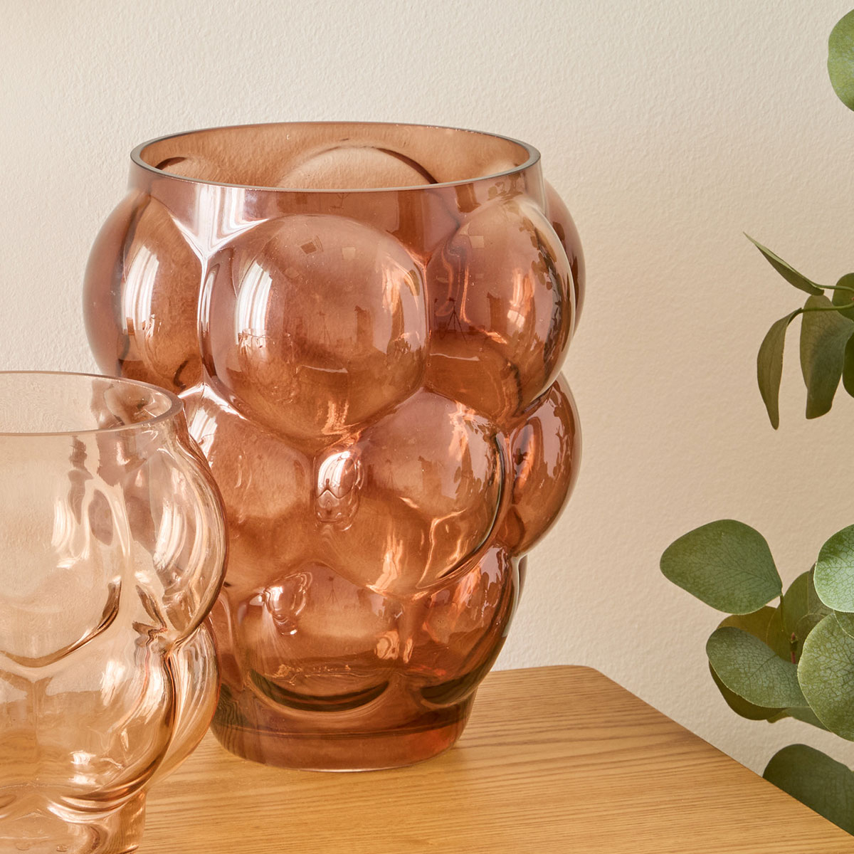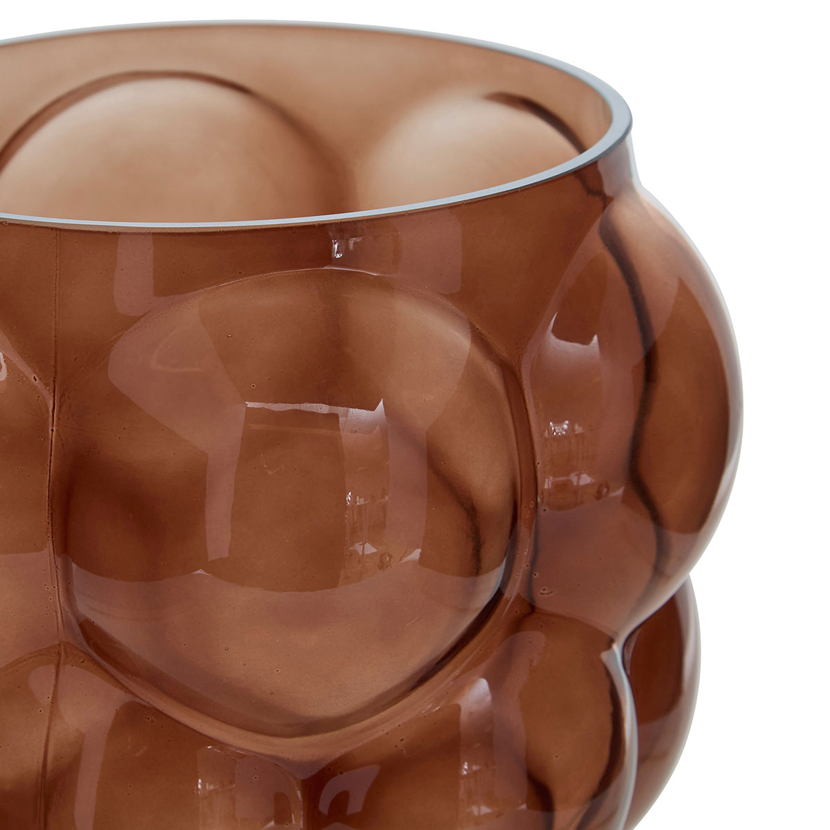 Διακοσμητικό βάζο με μοντέρνα αισθητική. Είναι κατασκευασμένο από γυαλί σε καφέ απόχρωση με ανάγλυφο σχέδιο. Ιδανικό για το σαλόνι, την τραπεζαρία ή οποιονδήποτε άλλο χώρο επιθυμείτε να διακοσμήσετε και να δώσετε στυλ. Συνδυάστε το με τα υπόλοιπα είδη της ίδιας συλλογής για ένα ολοκληρωμένο αποτέλεσμα στο χώρο σας.