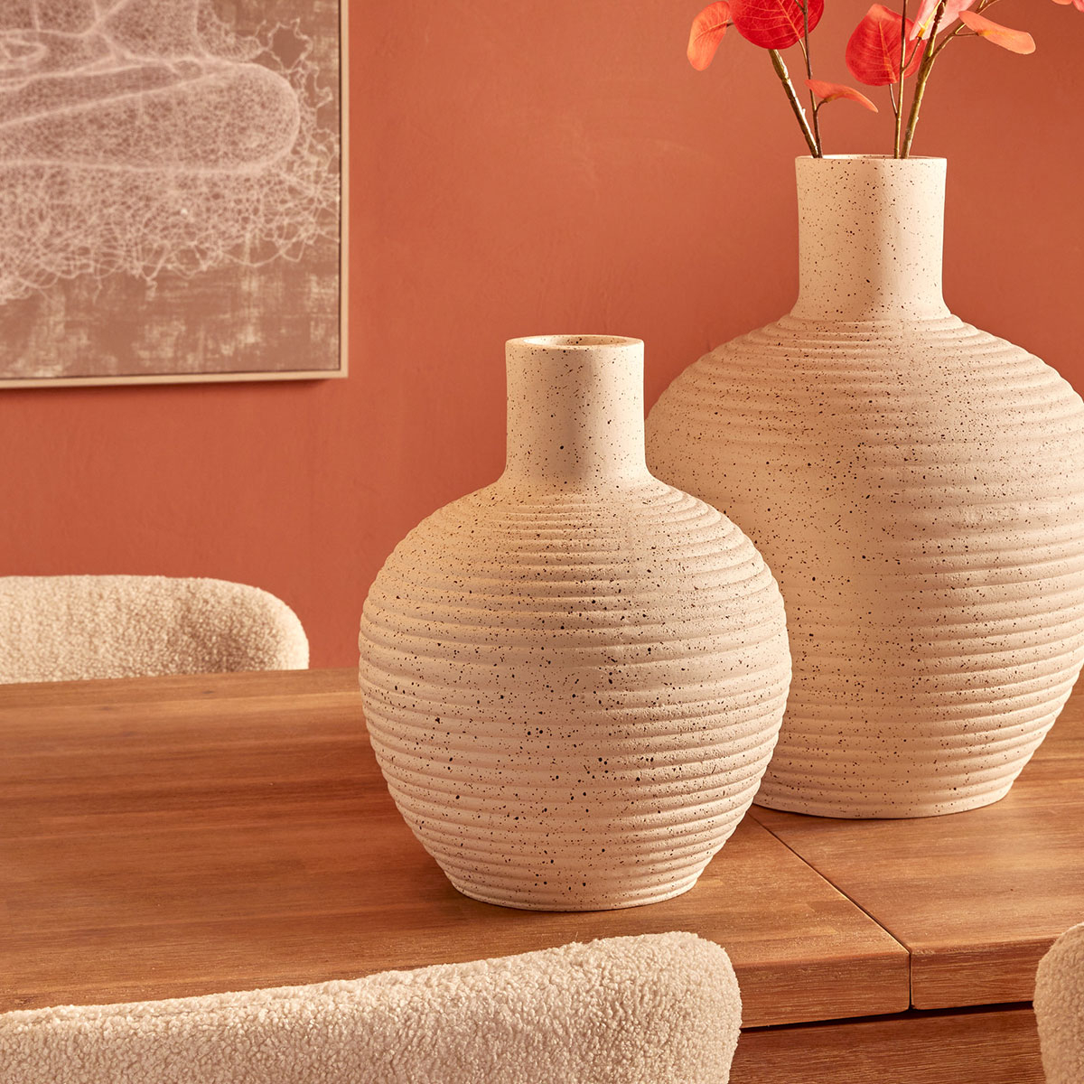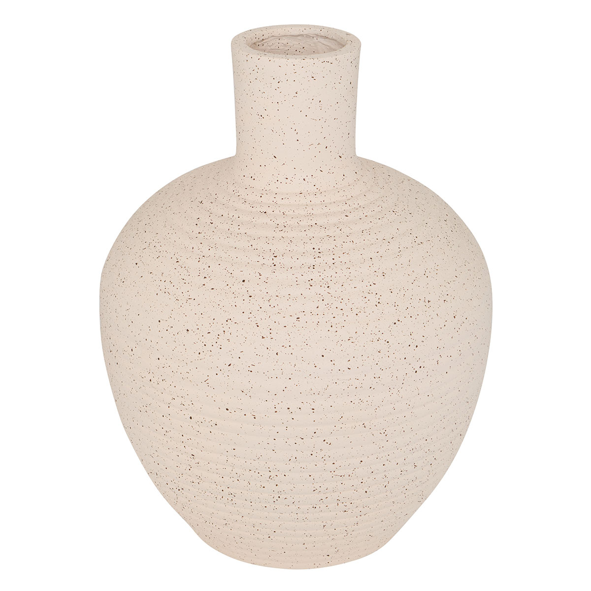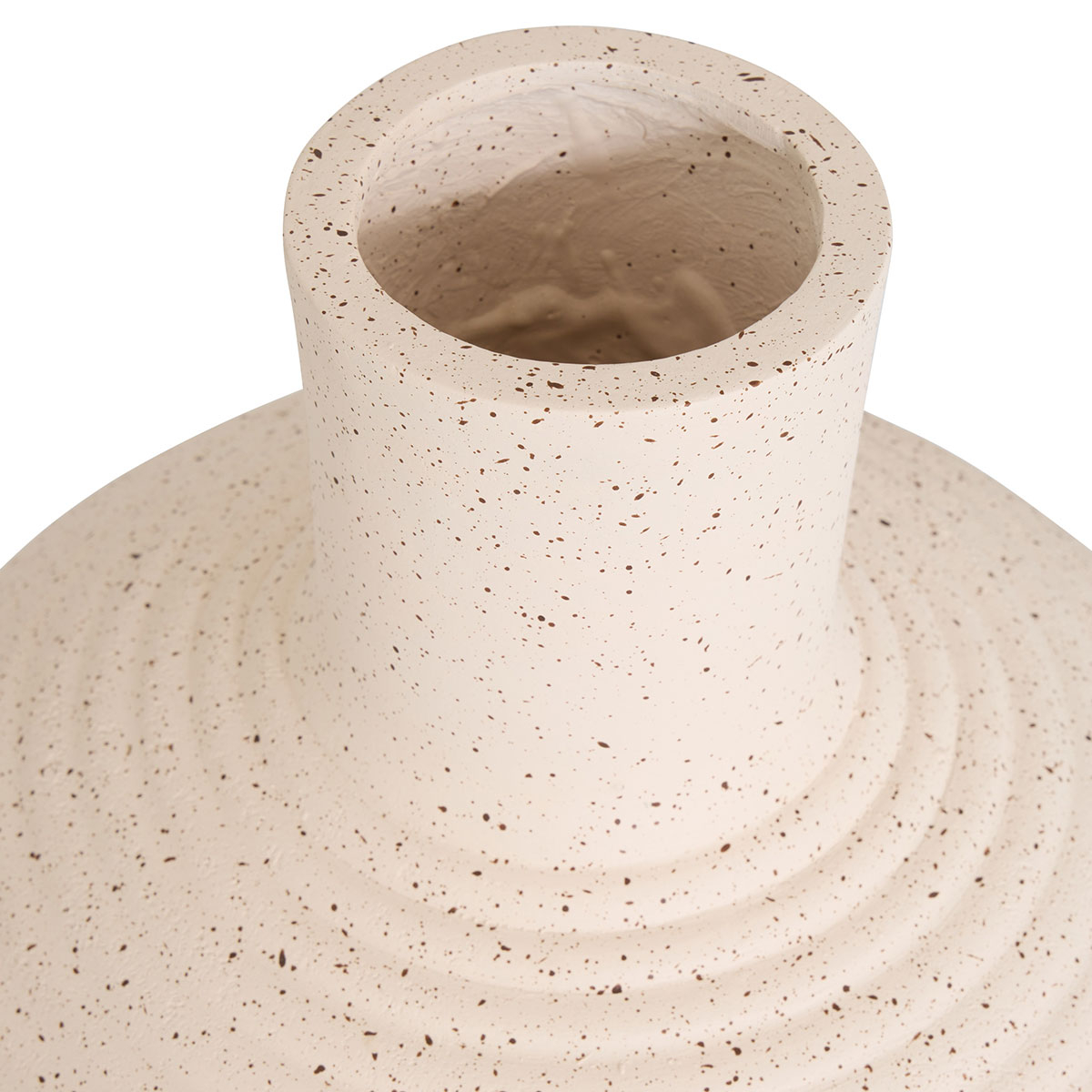 Διακοσμητικό βάζο με μίνιμαλ αισθητική. Είναι κατασκευασμένο από κεραμικό υλικό σε εκρού χρώμα με πιτσιλωτό και ανάγλυφο σχέδιο. Ιδανικό για το σαλόνι, την τραπεζαρία ή οποιονδήποτε άλλο χώρο επιθυμείτε να διακοσμήσετε και να δώσετε στυλ. Συνδυάστε το με τα υπόλοιπα είδη της ίδιας συλλογής για ένα ολοκληρωμένο αποτέλεσμα στο χώρο σας.