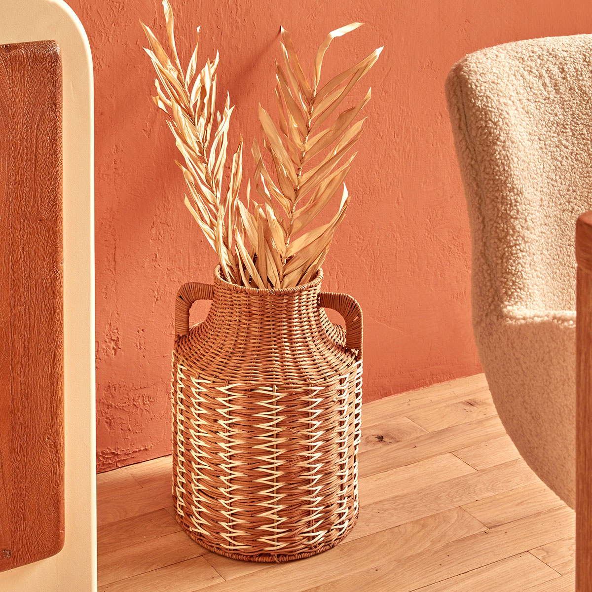 Βάζο διακόσμησης με έθνικ ύφος σε καφέ απόχρωση. Είναι κατασκευασμένο από ξύλο ρατάν και έχει μεταλλικό σκελετό. Κατάλληλο για οποιονδήποτε χώρο του σπιτιού σας. Τοποθετήστε το στο σαλόνι, την τραπεζαρία ή την βεράντα για να φτιάξετε το σπίτι που πάντα ονειρευόσασταν. Δεν είναι κατάλληλο για να βάλετε νερό. Συνδυάστε το με τα υπόλοιπα είδη της ίδιας συλλογής για ένα ολοκληρωμένο αποτέλεσμα στο χώρο σας.