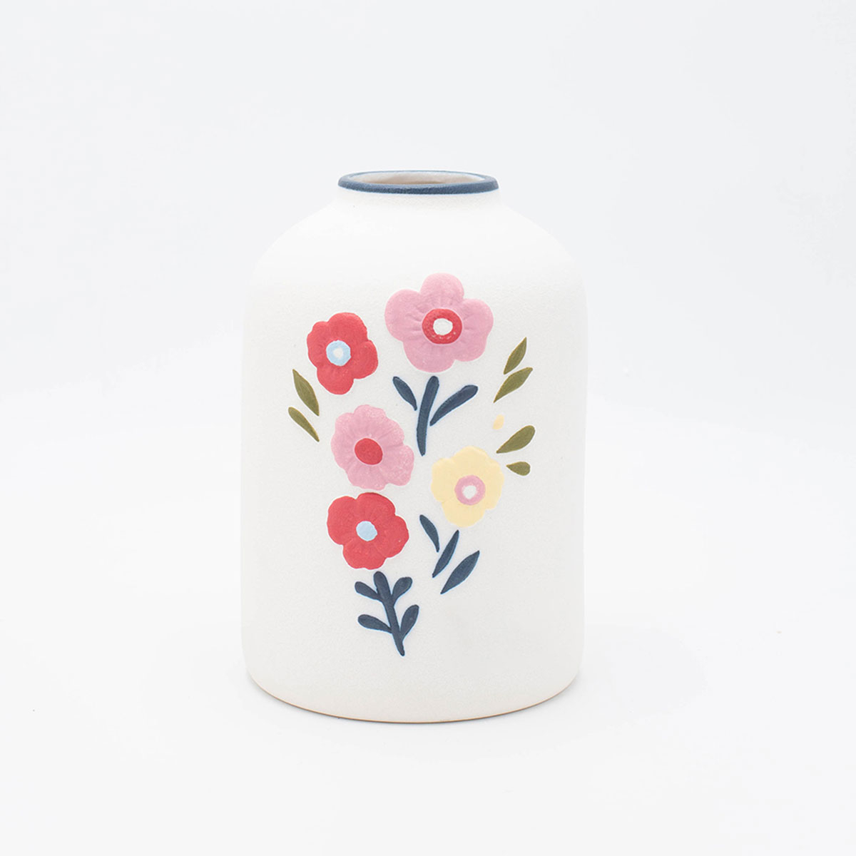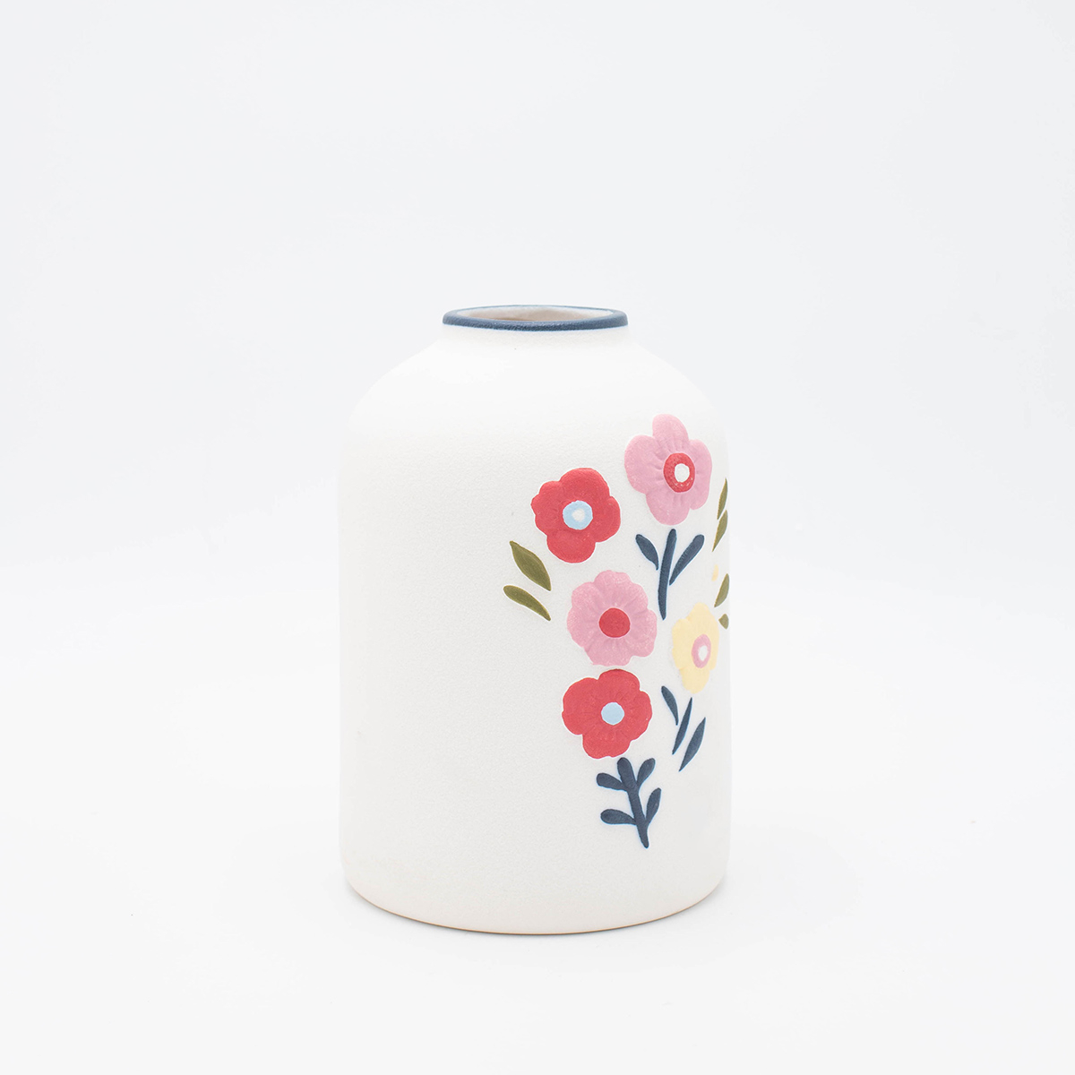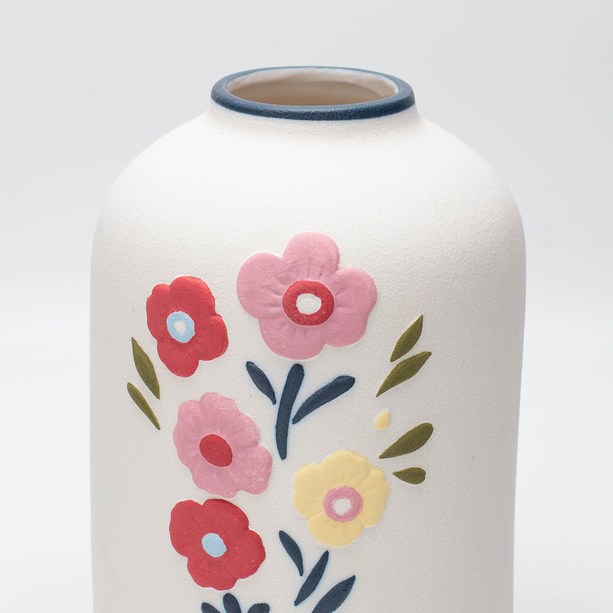Διακοσμητικό βάζο από την εταιρεία Estheti σε λευκό χρώμα με πολύχρωμο φλοράλ σχέδιο. Είναι κατασκευασμένο από κεραμικό υλικό. Μπορεί να χρησιμοποιηθεί για να τοποθετήσετε μέσα λουλούδια ή μόνο του σαν διακοσμητικό. Τοποθετήστε το στο σαλόνι, την τραπεζαρία ή σε οποιοδήποτε άλλο σημείο για να το διακοσμήσετε.