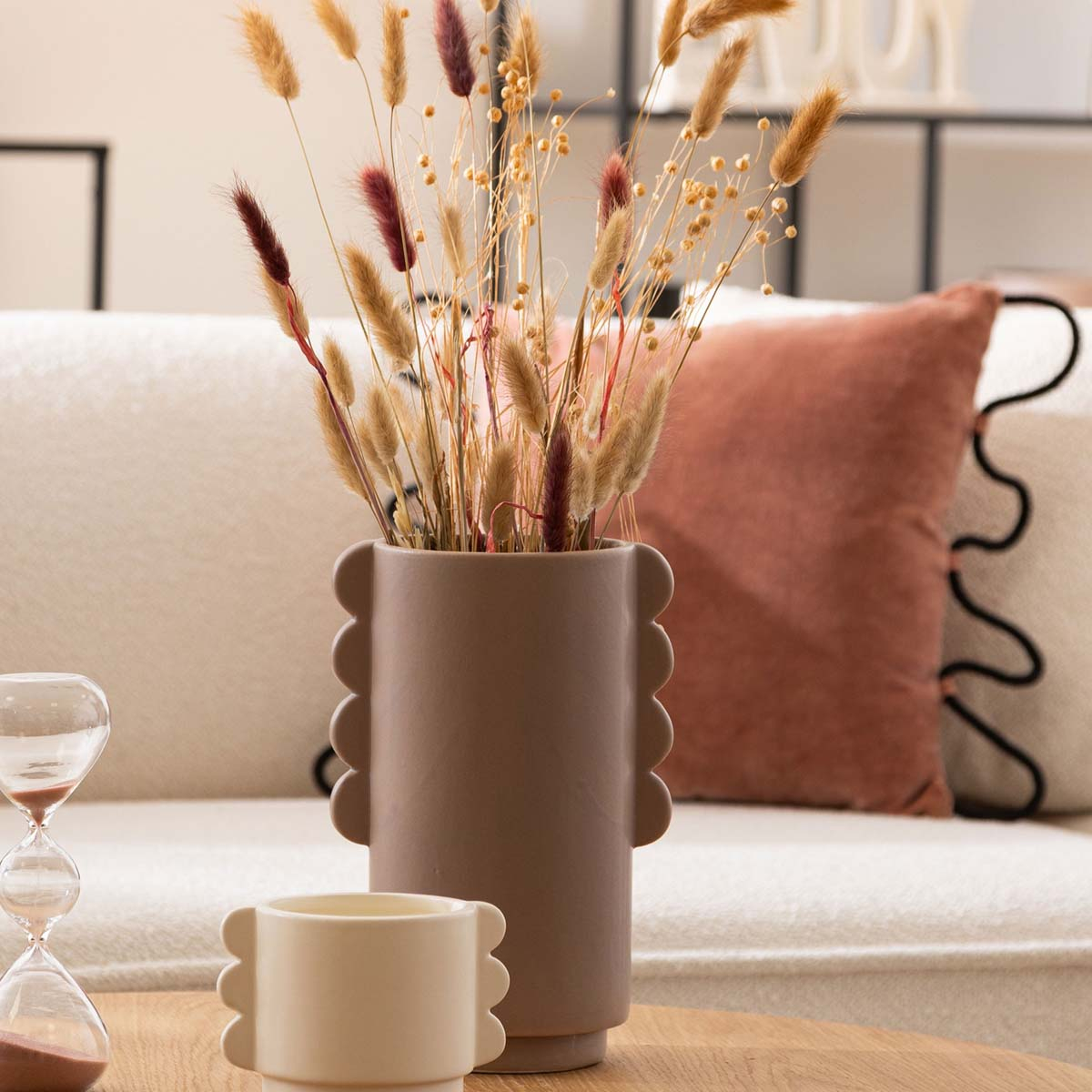 Βάζο διακόσμησης με μοντέρνο στυλ. Είναι κατασκευασμένο από κεραμικό υλικό σε μπεζ ματ χρώμα. Ιδανικό για τοποθέτηση στην τραπεζαρία, τον μπουφέ ή το τραπεζάκι σαλονιού. Συνδυάστε το με τα υπόλοιπα είδη της ίδιας συλλογής για ένα ολοκληρωμένο αποτέλεσμα στο χώρο σας.