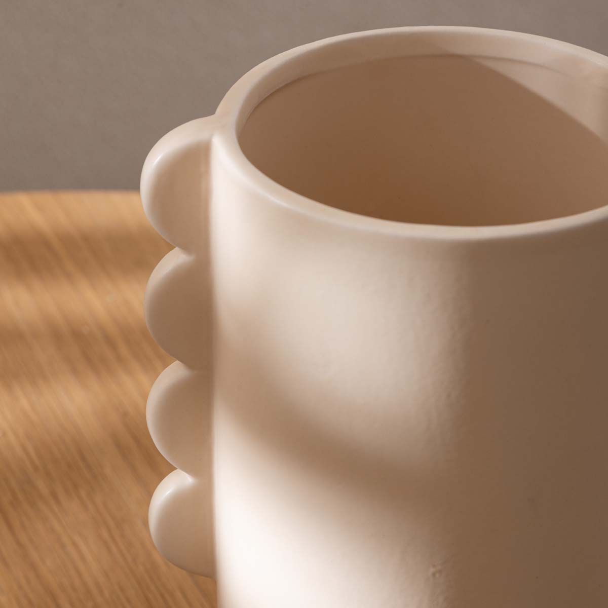 Βάζο διακόσμησης με μοντέρνο στυλ. Είναι κατασκευασμένο από κεραμικό υλικό σε ιβουάρ ματ χρώμα. Ιδανικό για τοποθέτηση στην τραπεζαρία, τον μπουφέ ή το τραπεζάκι σαλονιού. Συνδυάστε το με τα υπόλοιπα είδη της ίδιας συλλογής για ένα ολοκληρωμένο αποτέλεσμα στο χώρο σας.