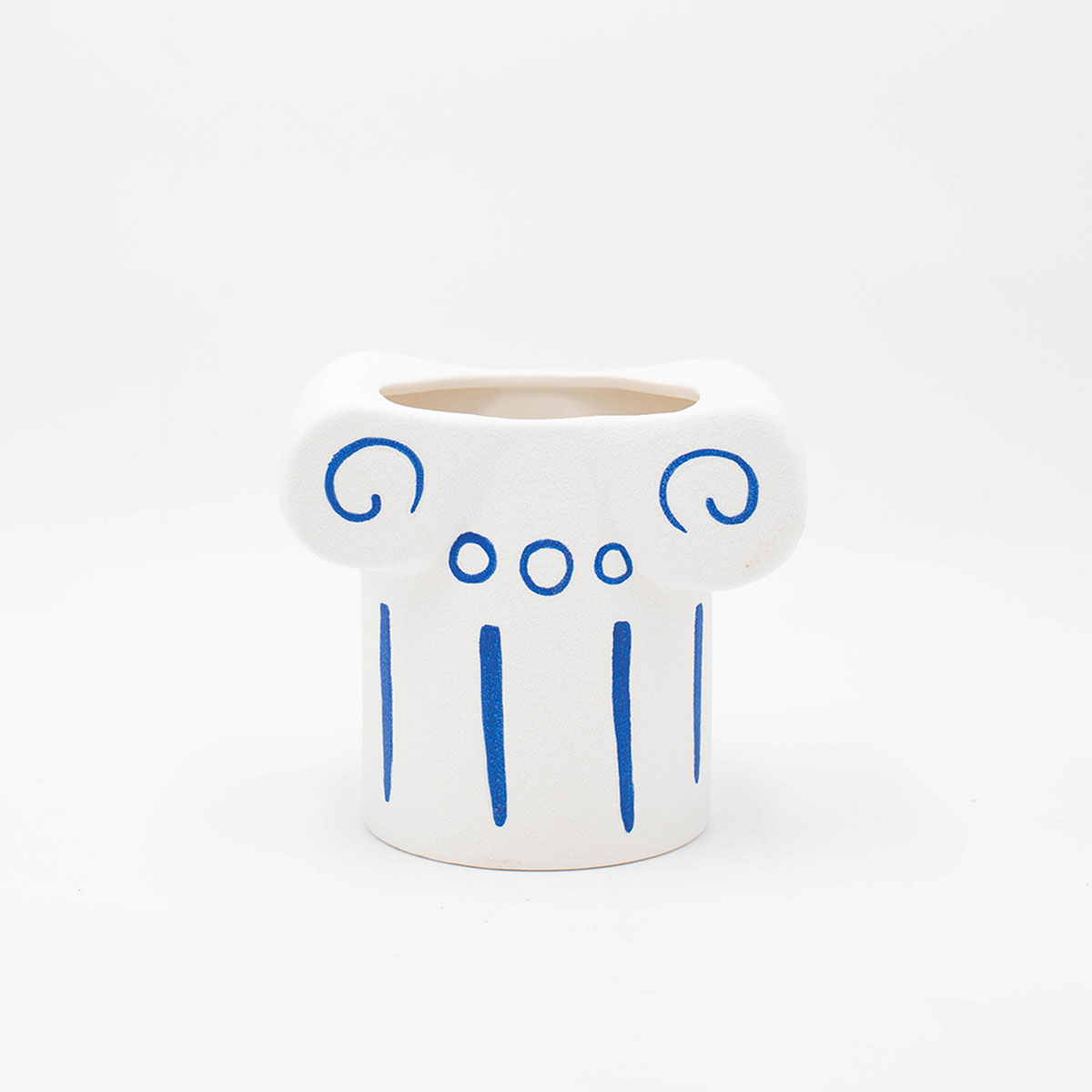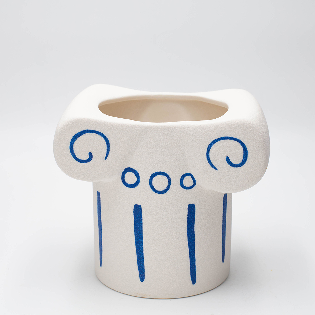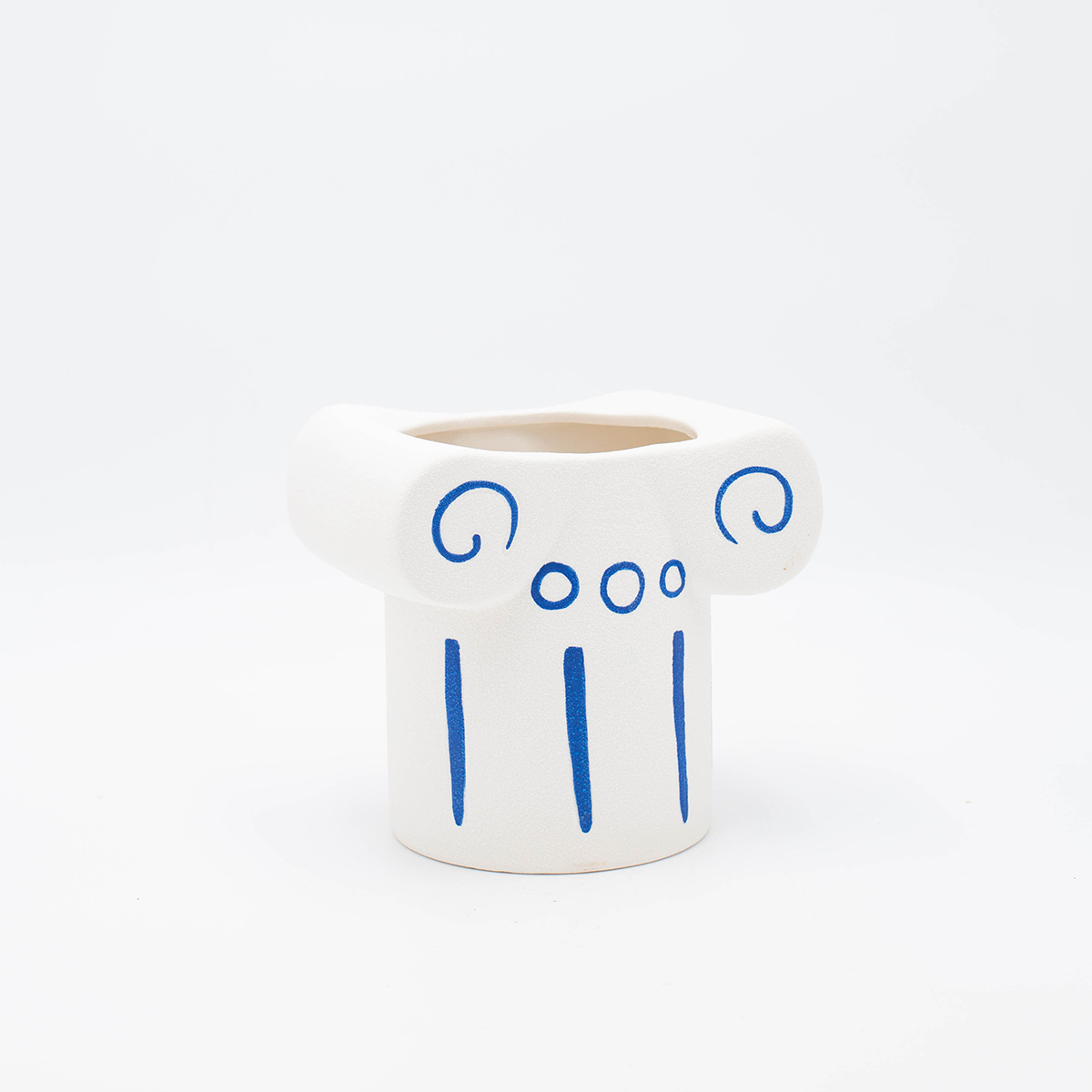 Διακοσμητικό βάζο από την εταιρεία Estheti σε λευκό χρώμα με γαλάζιες λεπτομέρειες και σχέδιο κίονα. Είναι κατασκευασμένο από πορσελάνη. Μπορεί να χρησιμοποιηθεί για να τοποθετήσετε μέσα λουλούδια ή μόνο του σαν διακοσμητικό. Τοποθετήστε το στο σαλόνι, την τραπεζαρία ή σε οποιοδήποτε άλλο σημείο για να το διακοσμήσετε.
