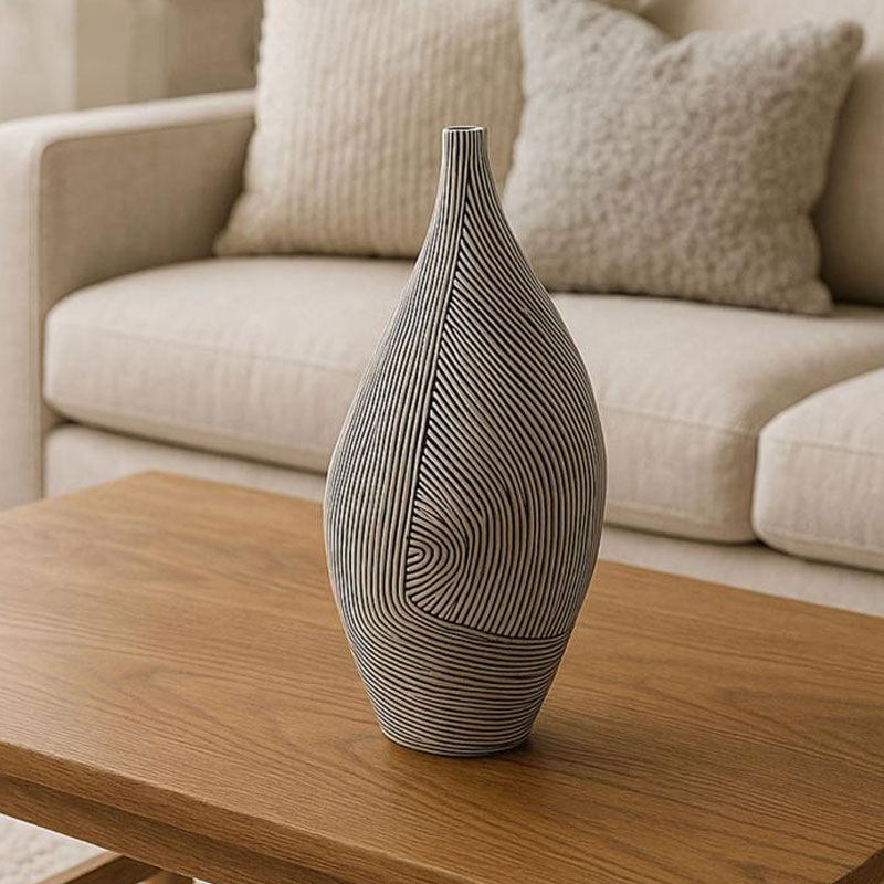 Διακοσμητικό βάζο από την εταιρεία Espiel με μίνιμαλ σχεδιασμό. Είναι κατασκευασμένο από polyresin υλικό σε γκρι χρώμα με ανάγλυφο σχέδιο. Τοποθετήστε το στην τραπεζαρία ή στο τραπεζάκι του σαλονιού σας και κερδίστε τις εντυπώσεις των καλεσμένων σας. Συνδυάστε το με τα υπόλοιπα είδη του ίδιου σετ για ένα ολοκληρωμένο αποτέλεσμα.