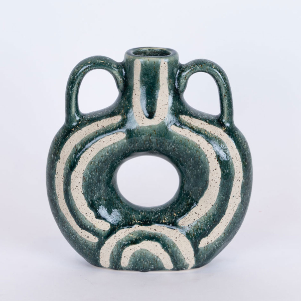 Διακοσμητικό βάζο από την εταιρεία Estheti σε καφέ χρώμα με μπεζ λεπτομέρεια και έθνικ ύφος. Είναι κατασκευασμένο από κεραμικό υλικό. Μπορεί να χρησιμοποιηθεί για να τοποθετήσετε μέσα λουλούδια ή μόνο του σαν διακοσμητικό. Τοποθετήστε το στο σαλόνι, την τραπεζαρία ή σε οποιοδήποτε άλλο σημείο για να το διακοσμήσετε.
