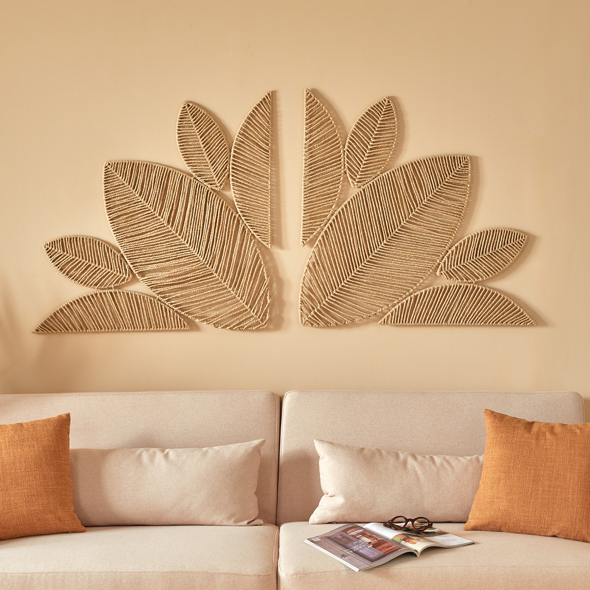 Κεφαλάρι για πίσω από το κρεβάτι με έθνικ ύφος σε μπεζ χρώμα. Είναι κατασκευασμένο από χάρτινο σχοινί και έχει μεταλλικό σκελετό για να στέκεται. Έρχεται σε 2 κομμάτια και μπορεί να τοποθετηθεί ενιαία ή με απόσταση μεταξύ των 2 κομματιών στο κεφάλι του κρεβατιού ή πάνω από ένα χαμηλό έπιπλο. Μπορείτε να το κρεμάσετε σε όποιο ύψος του τοίχου θέλετε καθώς δεν έχει πόδια. Ιδανική λύση για να διακοσμήσετε τον κενό τοίχο πίσω από το κρεβάτι σας και να ανανεώσετε τη διακόσμηση της κρεβατοκάμαράς σας.
