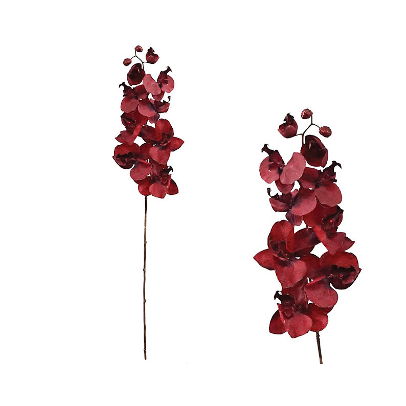 Τεχνητό λουλούδι ορχιδέα σε κόκκινο χρώμα από την εταιρεία Marhome. Είναι κατασκευασμένο από πλαστικό και υφασμάτινο υλικό ενώ φέρει μεταλλικό σύρμα στο εσωτερικό του, για να μπορεί να σταθεί. Χρησιμοποιήστε τεχνητά φυτά για να διακοσμήσετε τους εσωτερικούς ή εξωτερικούς χώρου σας και να ανανεώσετε την αισθητική τους.