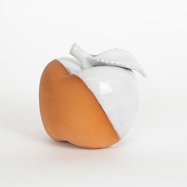 Επιτραπέζιο διακοσμητικό από την εταιρεία Estheti σε λευκό-τερακότα λεπτομέρειες και σχήμα μήλου. Είναι κατασκευασμένο από κεραμικό υλικό. Μπορεί να τοποθετηθεί στην τραπεζαρία, τη βιβλιοθήκη ή σε οποιοδήποτε άλλο σημείο επιθυμείτε, ολοκληρώνοντας έτσι τη διακόσμηση. Συνδυάστε το με τα υπόλοιπα είδη της ίδιας σειράς για ένα ολοκληρωμένο σετ.